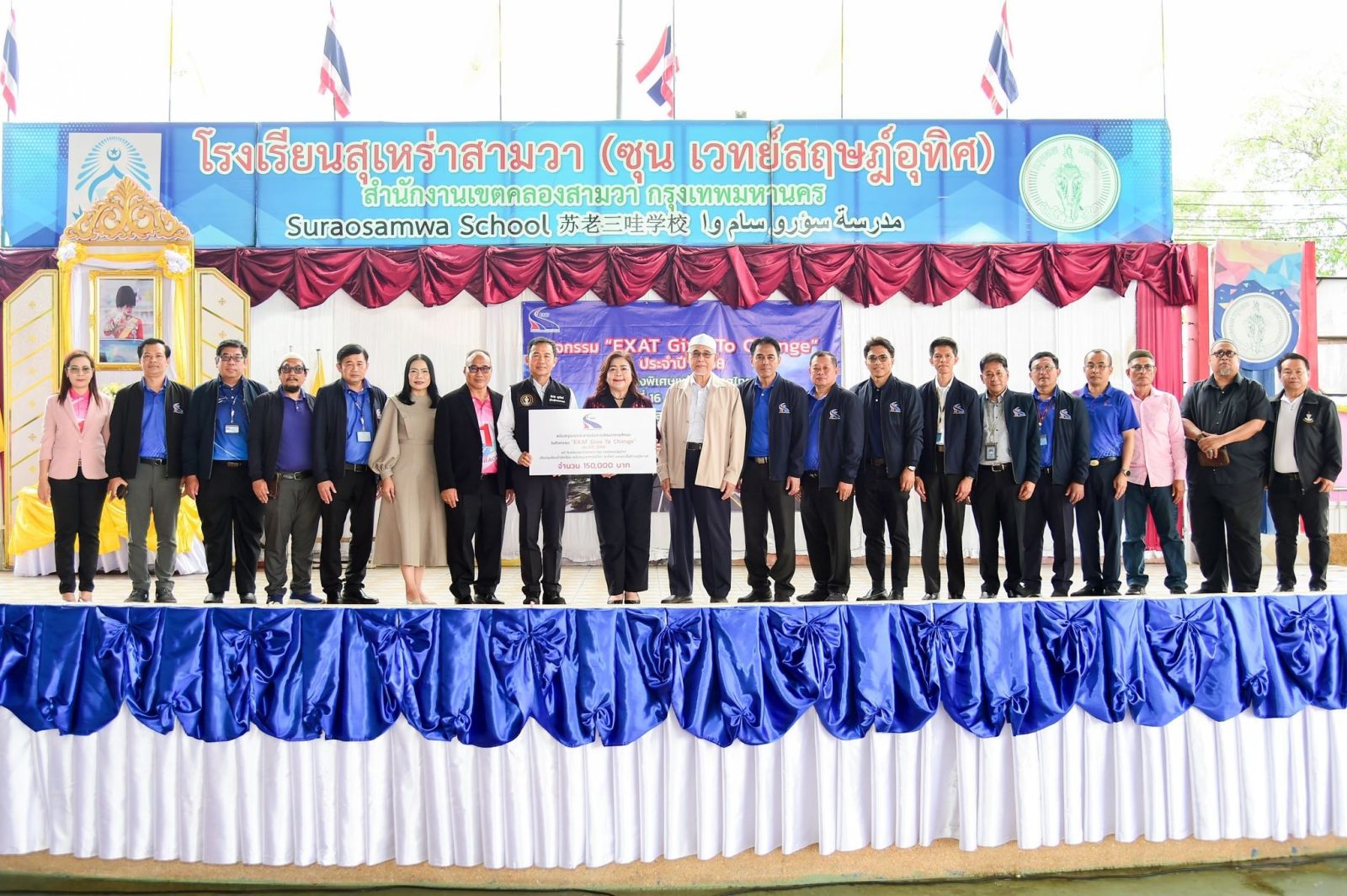 สำหรับกิจกรรม “EXAT Give To Change” ในครั้งนี้ กทพ. ได้จัดกิจกรรมที่โรงเรียนสุเหร่าสามวา ซึ่งเป็นโรงเรียนที่อยู่ใกล้การดำเนินโครงการทางพิเศษฉลองรัช ส่วนต่อขยายช่วงจตุโชติ-ถนนลำลูกกา ระยะทาง 16.21 กม. ปัจจุบันกำลังดำเนินการก่อสร้าง ซึ่งอยู่ในความรับผิดชอบ ของ กทพ. เมื่อก่อสร้างแล้วเสร็จจะช่วยเพิ่มความสะดวกในการเดินทางและแก้ไขปัญหาการจราจรในพื้นที่ถนนลำลูกกา ถนนหทัยราษฎร์ ถนนนิมิตใหม่ และพื้นที่ใกล้เคียงได้ โดยในการนี้ กทพ. ได้สนับสนุนงบประมาณจำนวน 150,000 บาท เพื่อปรับปรุงและพัฒนาโรงเรียนสุเหร่าสามวา ได้แก่ การซ่อมแซมห้องน้ำนักเรียนให้ถูกสุขลักษณะ สนับสนุนชุดกีฬาและอุปกรณ์กีฬา รวมถึงมอบชุดเสื้อผ้าวงดุริยางค์ เพื่อส่งเสริมการเรียนรู้และสุขภาวะของนักเรียน