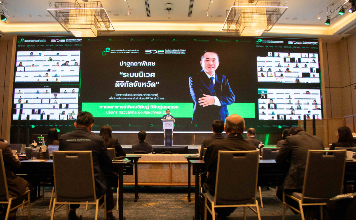 วันที่ 15 กันยายน 2568 ศาสตราจารย์พิเศษวิศิษฏ์ วิศิษฏ์สรอรรถ ปลัดกระทรวงดิจิทัลเพื่อเศรษฐกิจและสังคม (ดีอี) กล่าวเปิดงานประชาสัมพันธ์เปิดตัว การขับเคลื่อนดิจิทัลเพื่อเศรษฐกิจและสังคมในระดับอำเภอ และให้ความรู้ในการขับเคลื่อนกำลังคนดิจิทัลในระดับพื้นที่ “โครงการ 1 อำเภอ 1 ไอทีแมน” (1 Amphoe 1 IT Man) ภายใต้โครงการส่งเสริมและพัฒนาทักษะความรู้เพื่อขับเคลื่อนและยกระดับกำลังคนดิจิทัลระดับอำเภอ พร้อมปาฐกถาพิเศษ ในหัวข้อ “ระบบนิเวศดิจิทัลจังหวัด” โดยมี ดร.เวทางค์ พ่วงทรัพย์ เลขาธิการคณะกรรมการดิจิทัลเพื่อเศรษฐกิจและสังคมแห่งชาติ (BDE) กล่าวรายงาน พร้อมด้วย บุคลากรภาครัฐ ภาคเอกชน ภาคการศึกษา เจ้าหน้าที่บริหารงานดิจิทัลระดับอำเภอ และผู้ที่เกี่ยวข้องเข้าร่วมงานเป็นจำนวนมาก จัดโดยสำนักงานคณะกรรมการดิจิทัลเพื่อเศรษฐกิจและสังคมแห่งชาติ (BDE) กระทรวงดีอี ณ ห้องนครรังสิต 1-2 โรงแรมโนโวเทล กรุงเทพ ฟิวเจอร์พาร์ครังสิต จ.ปทุมธานี และในรูปแบบการประชุมทางไกล