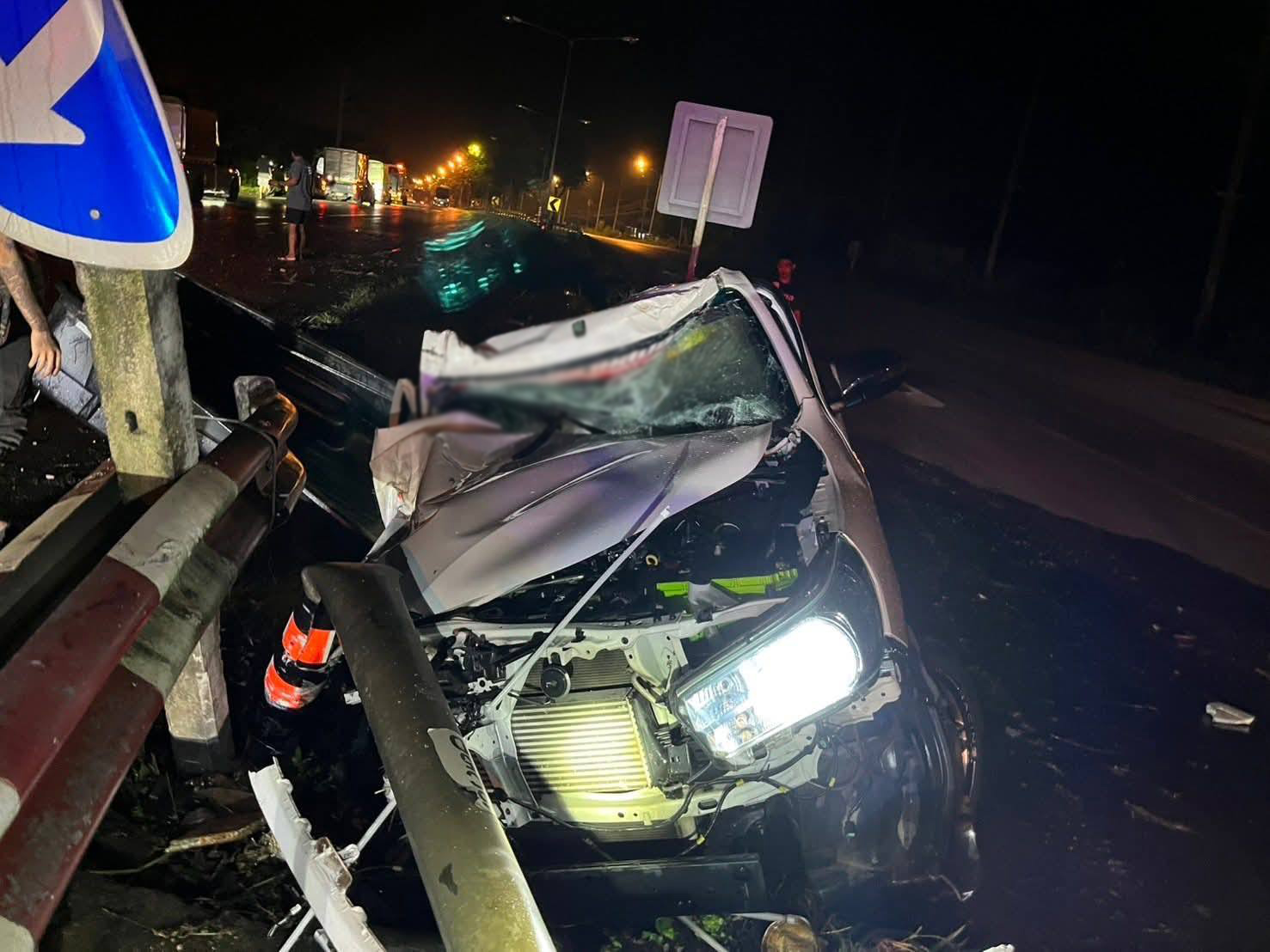 ที่เกิดเหตุ พบรถกระบะ โตโยต้า สีขาว ป้ายทะเบียน ประจวบคีรีขันธ์ ลักษณะชนเสาไฟฟ้าและขอบเหล็กกั้นขอบทาง ตรวจสอบพบว่ามีผู้เสียชีวิต 1 ราย ร่างติดค้างในยานพาหนะ ทางเจ้าหน้าที่กู้ภัยสายชลชุมพรพร้อมอุปกรณ์ตัดถ่างและชุดไฟส่องสว่าง ร่วมดำเนินการงัดรถและนำร่างผู้เสียชีวิตออกมาจากตัวรถ ตรวจสอบ เป็นผู้ชาย อายุประมาณ 25 - 30 ปี ในส่วนของสาเหตุอยู่ระหว่างการสอบสวนของเจ้าหน้าที่ตำรวจ สภ.ท่าแซะ