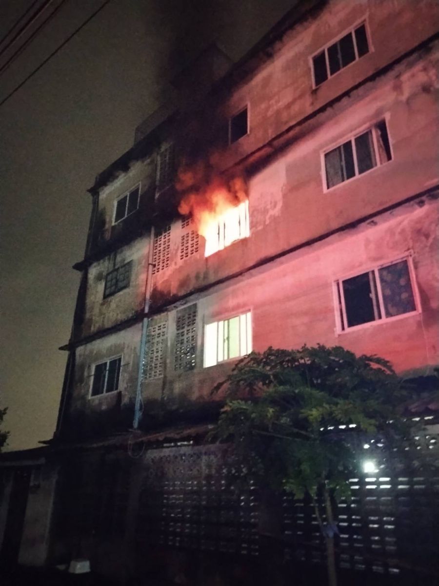 ไฟไหม้บนอาคารพาณิชย์ ซอยสุขสวัสดิ์ 76 จนท.ใช้น้ำดับและเพลิงสงบ พบบาดเจ็บถูกไฟลวก อาสาสมัครช่วยปฐมพยาบาล จ.สมุทรปราการ