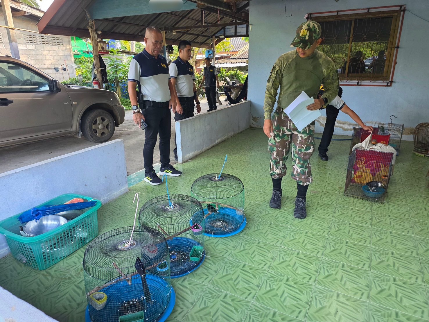 หลังเจ้าหน้าที่ตำรวจ ปทส. พบผู้ใช้บัญชีสื่อออนไลน์ Tiktok, Facebook โพสต์ขายสัตว์ป่าคุ้มครองประเภทนกให้กับกลุ่มลูกค้าในสื่อออนไลน์ จึงขอหมายศาลเข้าตรวจสอบสถานที่ ซึ่งเป็นบ้านเช่าไม่มีเลขที่ อ.สอยดาว จ.จันทบุรี เมื่อเจ้าหน้าที่เข้าตรวจค้นพบผู้ต้องหา 2 ราย และตรวจค้นพบสัตว์ป่าคุ้มครองประเภทนก อีกจำนวนหลายตัวหลายชนิด อยู่ภายในบริเวณบ้านเช่า และพบอุปกรณ์สำหรับดักสัตว์ป่า อีกหลายรายการ จึงได้มีการจัดทำบันทึกตรวจค้นตรวจยึด และนำตัวส่งดำเนินตามกฎหมายต่อไป