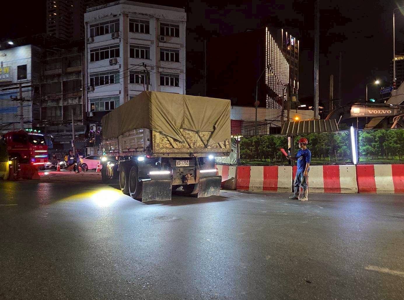 การรถไฟฟ้าขนส่งมวลชนแห่งประเทศไทย (รฟม.) โดยสำนักงานความปลอดภัย อาชีวอนามัยและสภาพแวดล้อมในการทำงาน (สปอ.) ลงพื้นที่ตรวจสอบการดำเนินงานด้านความปลอดภัยในการก่อสร้าง โครงการรถไฟฟ้าสายสีส้ม ช่วงบางขุนนนท์ – มีนบุรี (สุวินทวงศ์) ช่วงเวลากลางคืน (Night Audit) โดยลงพื้นที่บริเวณสถานีอนุสาวรีย์ประชาธิปไตย สถานีหลานหลวง สถานียมราช สถานีราชเทวี สถานีประตูน้ำ และสถานีราชปรารภ โดยได้ตรวจสอบการติดตั้งแผงผ้าใบ ไฟส่องสว่าง ไฟสัญญาณเตือน และป้ายเตือนต่างๆ ตามแนวเขตก่อสร้าง ให้มั่นคงแข็งแรง อยู่ในตำแหน่งที่ปลอดภัย สามารถเห็นได้อย่างชัดเจน การเก็บวัสดุอุปกรณ์ที่ไม่ใช้แล้วให้เรียบร้อย การจัดวางแนวแบริเออร์ (Barriers) โดยแนวแบริเออร์จะต้องอยู่ภายในเขตพื้นที่ที่กำหนดเพื่อไม่ให้ล้ำเข้าพื้นผิวจราจร ซึ่งเป็นการป้องกันอุบัติเหตุที่อาจเกิดขึ้นจากการใช้ถนนในบริเวณดังกล่าว พร้อมกำชับให้เจ้าหน้าที่ทุกคนสวมใส่อุปกรณ์คุ้มครองความปลอดภัยส่วนบุคคลให้ครบถ้วนตลอดระยะเวลาที่ปฏิบัติงาน และปฏิบัติตามมาตรฐานความปลอดภัยที่กำหนดอย่างเคร่งครัด