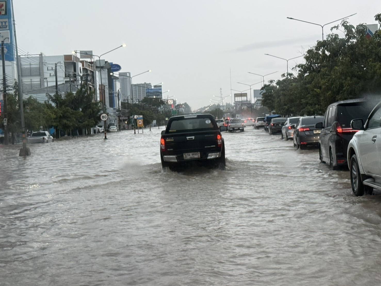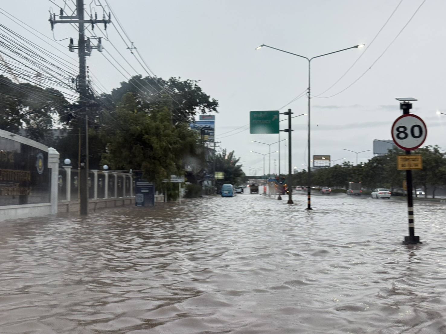 -และรถเล็กในพื้นที่: ใช้ถนนสายรอง เช่น ถนน ประชาสำราญ, ถนนนมะลิวัลย์ เพื่อหลีกเลี่ยงจุดท่วม