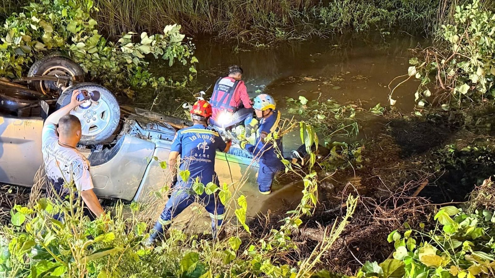 รถกระบะเสียหลักพุ่งลงคลองน้ำข้างถนนสายวังทอง - สากเหล็ก พบผู้เสียชีวิตติดค้างในยานพาหนะ จ.พิษณุโลก