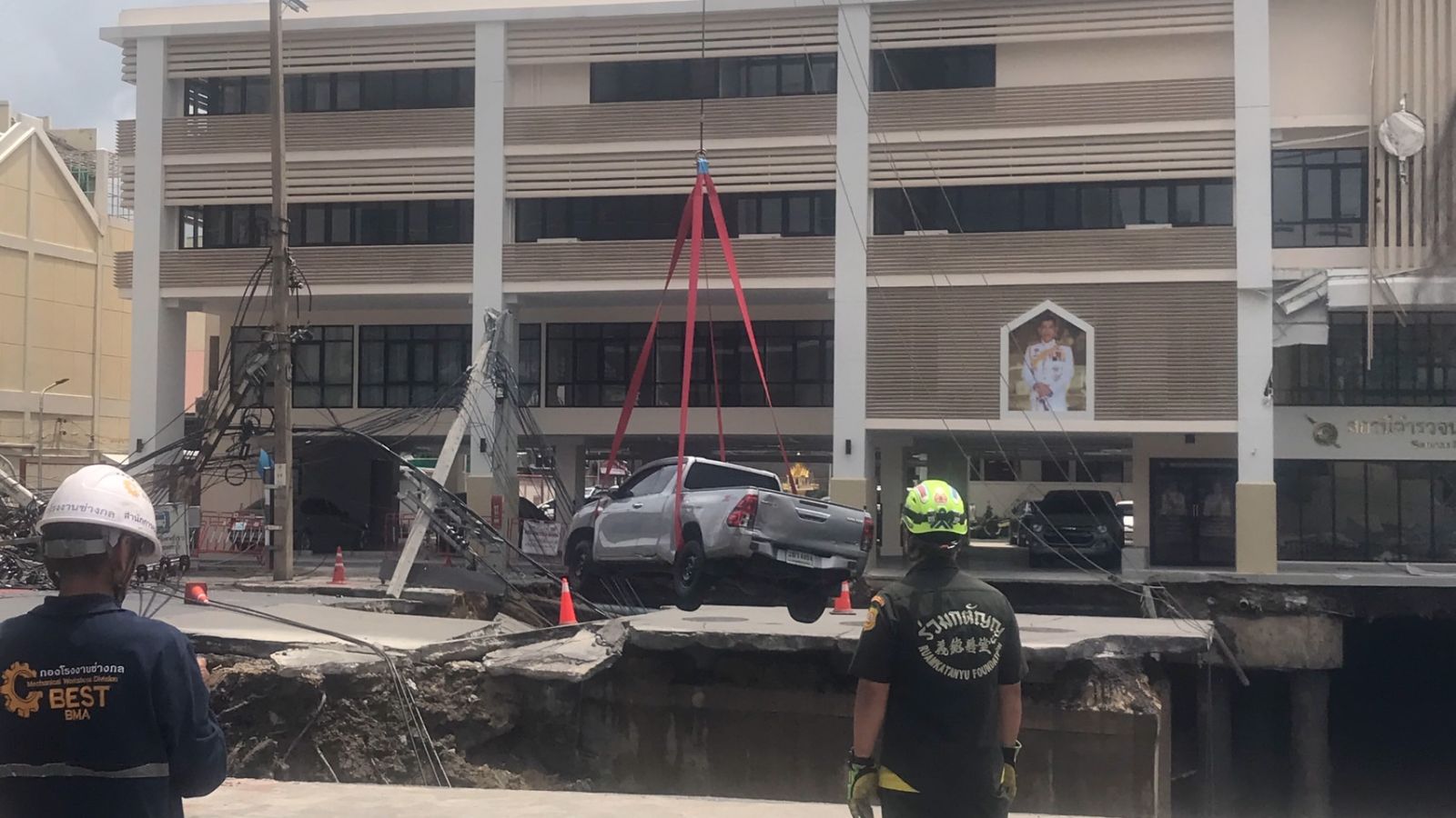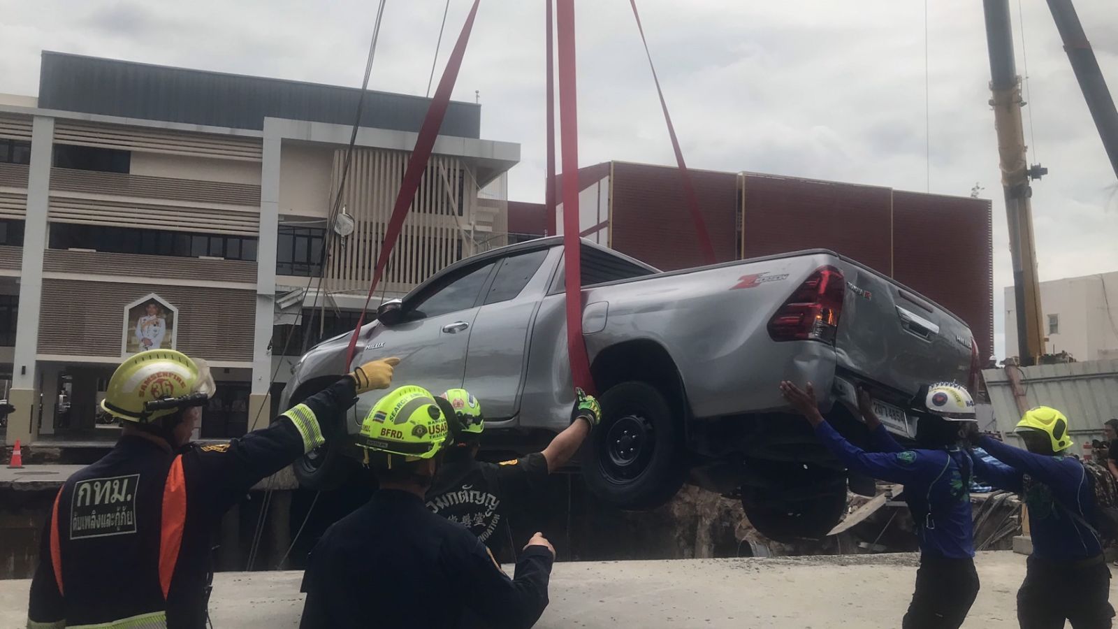 เมื่อเวลา 11.30 น. วันที่ 24 ก.ย. 68 จนท.เข้าดำเนินการย้ายรถกระบะ ที่จอดค้างในจุดที่เกิดเหตุถนนทรุดตัว บริเวณโรงพยาบาลวชิรพยาบาล ถนนสามเสน ออกมาได้เรียบร้อย