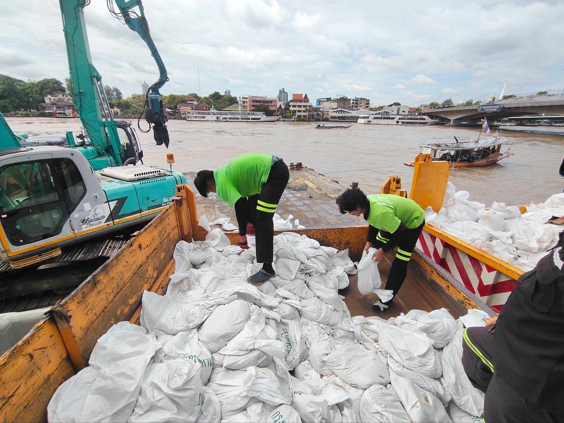 24 กันยายน 2568 สำนักการระบายน้ำ โดยกองระบบท่อระบายน้ำ จัดเจ้าหน้าที่ลงพื้นที่เร่งเสริมแนวป้องกันน้ำหนุนบริเวณจุดเสี่ยงต่ำ ถนนทรงวาด ช่วงหน้าบริษัทจิระมงคล เขตสัมพันธวงศ์ โดยดำเนินการเรียงกระสอบทรายตลอดแนวเขื่อนชั่วคราว ความยาวประมาณ 16 เมตร รวมกระสอบทรายที่ใช้กว่า 1,800 ใบ