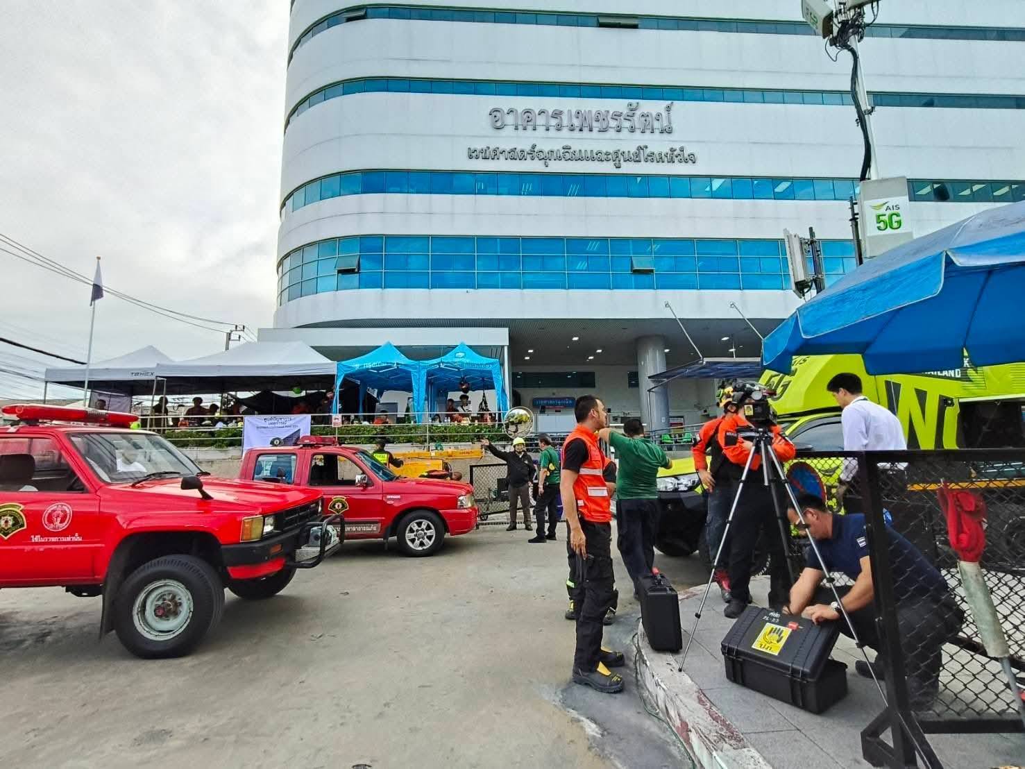 ล่าสุด ปภ. ได้รับการประสานจากกรุงเทพมหานคร ว่าขอรับการสนับสนุนอุปกรณ์ตรวจความเคลื่อนไหวของอาคาร ทาง ปภ. จึงได้สนับสนุนกล้อง SCOPE EYE ซึ่งเป็นชุดอุปกรณ์กล้องสำหรับตรวจจับความเคลื่อนไหวของโครงสร้างพร้อมสัญญาณเตือน จากศูนย์ป้องกันและบรรเทาสาธารณภัย เขต 1 ปทุมธานี จำนวน 2 ชุด ซึ่งได้เข้าถึงพื้นที่จุดบัญชาการ ณ ที่เกิดเหตุแล้ว และได้รับมอบภารกิจให้ตรวจจับการเคลื่อนไหวของอาคารสถานีตำรวจนครบาลสามเสน ซึ่งในระยะ 1 ชั่วโมงที่ผ่านมาได้ตรวจพบการขยับตัวของอาคาร 2 มิลลิเมตร และได้นำข้อมูลอัปเดตกับกรุงเทพมหานครเพื่อประกอบการวางแผนการปฏิบัติงาน ทั้งนี้ ทีมค้นหาและกู้ภัยในเขตเมือง (USAR) พร้อมกล้อง SCOPE EYE และอุปกรณ์พิเศษของ ปภ. จะสนับสนุนการปฏิบัติงานให้กับกรุงเทพมหานคร ตลอด 24 ชั่วโมง
