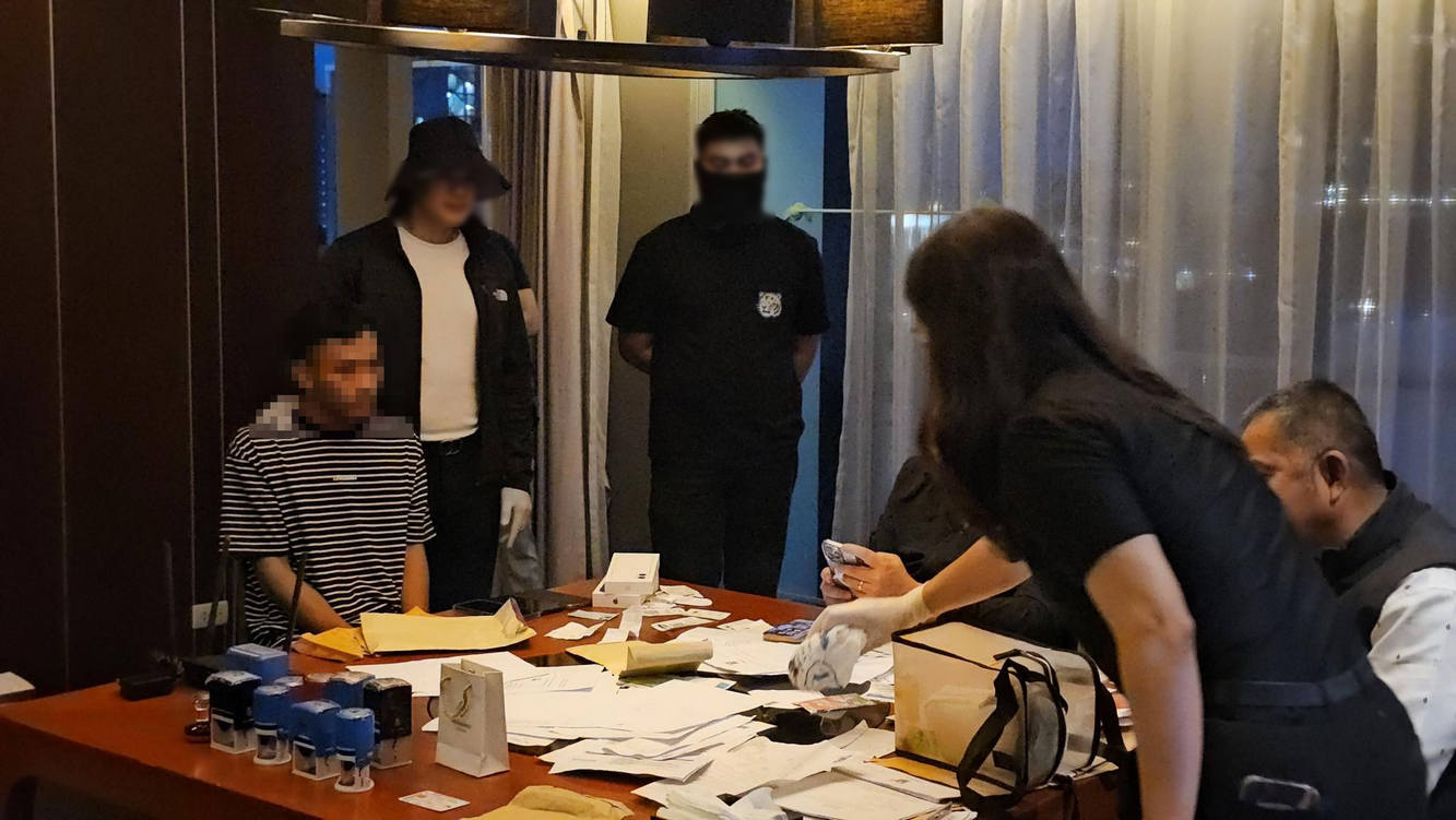 พลตำรวจตรีวสันต์ เตชะอัครเกษม รองผู้บัญชาการตำรวจนครบาล (รองผบช.น.) พร้อมด้วยพลตำรวจตรีโชติวัฒน์ เหลืองวิลัย ผู้บังคับการกองบังคับการสืบสวนสอบสวน กองบัญชาการตำรวจนครบาล และพันตำรวจเอกอรรชวศิษฎ์ ศรีบุณยมานนทน์ ผู้กำกับสืบสวน 3 กองบังคับการสืบสวนสอบสวน กองบัญชาการตำรวจนครบาล และตำรวจกองบังคับการสืบสวนสอบสวน กองบัญชาการตำรวจนครบาล นำกำลังขยายผลเข้าตรวจสอบที่ชั้น 8 โรงแรมแห่งหนึ่งย่านรัชดาภิเษก แขวงลาดยาว เขตจตุจักร กรุงเทพฯ หลังได้รับแจ้งจากศูนย์วอร์รูมของสำนักงานตำรวจแห่งชาติ ซึ่งตรวจสอบพบการทำธุรกรรมทางการเงินที่ผิดปกติ มีการโอนเงินจำนวน 4,500,000 บาท ไปซื้อทองคำ จำนวน 80 บาท ผ่านทางช่องทางออนไลน์ ซึ่งก่อนหน้านี้ได้เชิญตัวผู้ต้องสงสัยจำนวน 2 คน ที่ไปรับทองคำย่านเยาวราชได้ให้ข้อมูลว่ามีการเปิดห้องพักแห่งนี้เป็นที่สั่งการให้ไปกดเงินและรับทอง