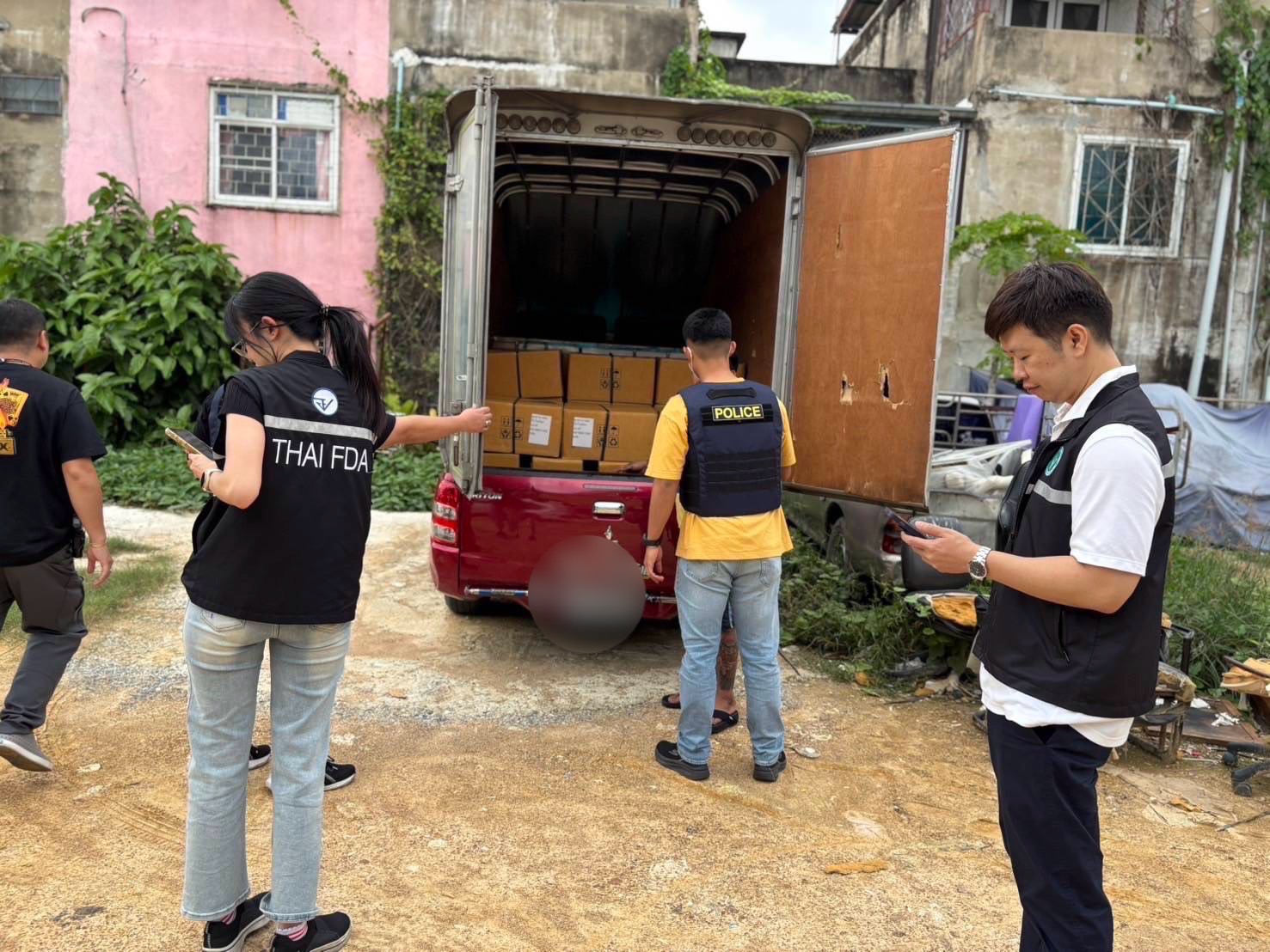 โดยเจ้าหน้าที่ตำรวจ บก.ปคบ. จับกุมผู้ต้องหาหญิงได้1ราย ต่อมาในวันที่ 22 กันยายน 2568 ทาง บก.ปคบ. ได้ร่วมกับกับเจ้าหน้าที่จากสำนักงานคณะกรรมการอาหารและยา นำหมายค้นเข้าตรวจค้นสถานที่ต่าง ๆ ที่เกี่ยวข้องกับการผลิตและการขายยาแก้ไอปลอม จำนวน 5 จุด ซึ่งเป็นสถานที่ผลิตและแบ่งบรรจุ โกดังแห่งหนึ่ง ต.ลาดหลุมแก้ว อ.ลาดหลุมแก้ว จ.ปทุมธานี และบ้านพักภายในซอยกำนันแม้น เขตจอมทอง รวมถึงย่านพระรามสอง และตรวจยึดยาแก้ไอปลอม วัตถุดิบ อุปกรณ์การผลิต ต่างๆได้ รวมตรวจค้น 5 จุดตรวจยึด ยาแก้ไอปลอมรวมทั้งสิ้น 170,000 ขวด โดยเป็นยาแก้ไอปลอม จำนวนกว่า 40,000 ขวด ขวดเปล่ารอการบรรจุกว่า 120,000 ขวด รวมถึงวัตถุดิบอุปกรณ์ในการผลิตจำนวนมาก รวมมูลค่าของกลางกว่า 20,000,000 บาท โดยจุดที่ใช้ในการผลิตและแบ่งบรรจุ มียอดการผลิตยาแก้ไอ วันละ 30,000 ขวด คิดเป็นมูลค่าวันละประมาณ 1,500,000 บาท โดยทำมาแล้วเป็นเวลา 2 เดือน