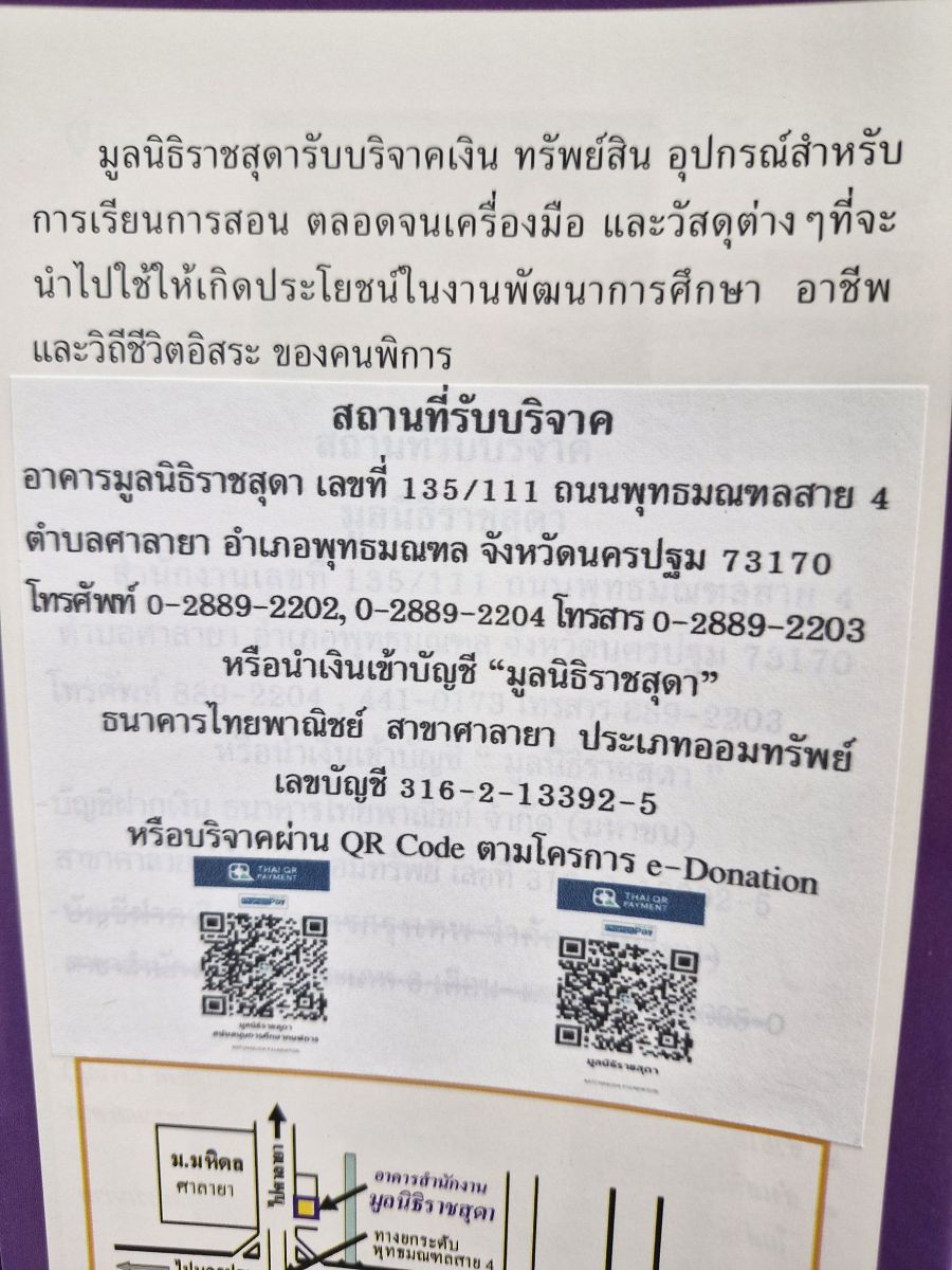 ในโอกาสนี้ นายจักรกฤษ์ ศรีแก่วิน ผู้จัดการฝ่ายสื่อสารองค์กร สวพ.FM91 ร่วมแสดงความยินดี พร้อมบริจาคให้เเก่มูลนิธิราชสุดา เพื่อการศึกษาเเละงานบริการคนพิการ