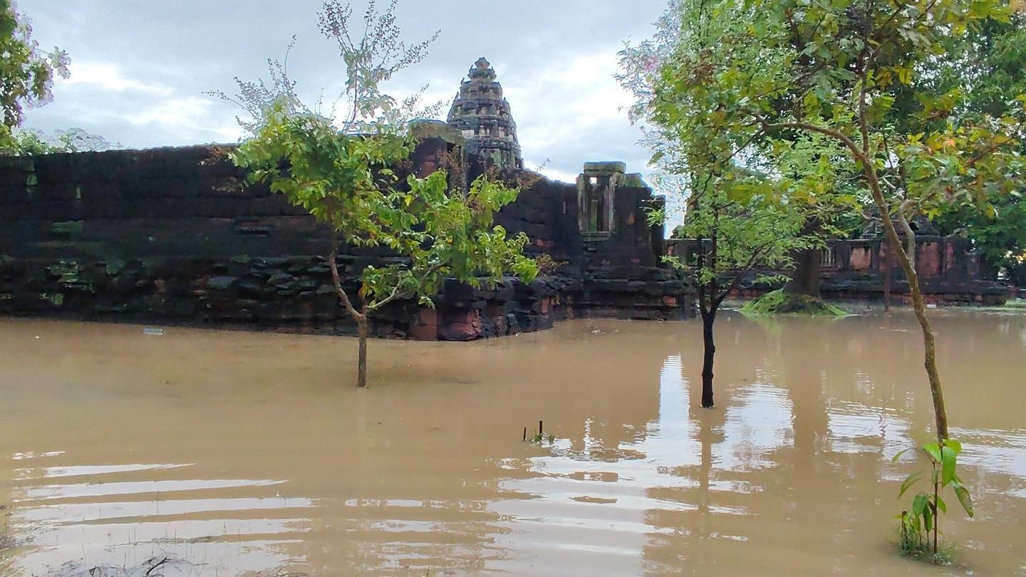 สถานการณ์น้ำท่วมใน อ.พิมาย จ.นครราชสีมา ยังคงวิกฤติ ล่าสุด “ปราสาทหินพิมาย” มรดกทางวัฒนธรรมสำคัญ ถูกน้ำท่วมซ้ำอีกครั้งในรอบเดือนนี้ รวมแล้วเป็นครั้งที่ 3 ตลาดสด ถนน และบ้านเรือนประชาชนได้รับผลกระทบถ้วนหน้า