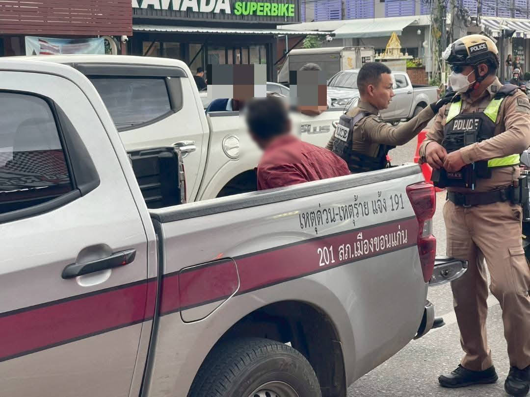หลังรับแจ้งเหตุ พ.ต.อ.ยศวัจน์ แก้วสืบธัญนิจ ผู้กำกับการสถานีตำรวจภูธรเมืองขอนแก่น พร้อมตำรวจมาตรวจสอบจนกระทั่งพบชายต้องสงสัย จึงได้ออกติดตาม พบตัวบริเวณใต้ทางรถไฟที่อยู่ห่างจากจุดเกิดเหตุไม่มาก และเมื่อนำรูปมาเปรียบเทียบ กับภาพจากกล้องวงจรปิดพบว่าเป็นคนเดียวกัน จึงได้ควบคุมตัว โดยเป็นชายไทย อายุ 35 ปี ชาว ต.ในเมือง อ.เมือง จ.ขอนแก่น อยู่ในอาการมีนเมา พูดจาวกวนไปมาไม่รู้เรื่อง ทราบว่าหลังก่อเหตุได้เดินข้ามถนนมิตรภาพ ก่อนที่จะนำหมวกและกระเป๋าไปทิ้งไว้ เจ้าหน้าที่จึงได้ไปเก็บหลักฐาน และเมื่อตรวจค้นภายในตัวพบไฟแช็คจำนวน 2 อัน จึงเก็บไว้เป็นหลักฐาน ก่อนควบคุมตัวชายคนดังกล่าว ไปเพื่อรอให้อาการเมายาสงบลง เพื่อจะได้มีการสอบสวนเพิ่มเติม