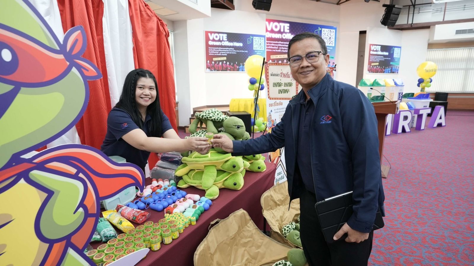 ทั้งนี้ ผลการดำเนินโครงการสำนักงานสีเขียว ประจำปี 2568 รฟม. ได้คัดเลือกพนักงาน จำนวน 16 คน เป็น Green Office Hero All Stars เป็นตัวแทนในการเรียนรู้ด้านการจัดการขยะในหน่วยงานจากวิทยากรและหน่วยงานภายนอก และประกวดจัดทำโครงการรณรงค์การทิ้งขยะฯ ซึ่งผลการประกวดจากการลงคะแนนของพนักงาน รฟม. ให้กลุ่ม Red Turtle เป็นผู้ชนะ