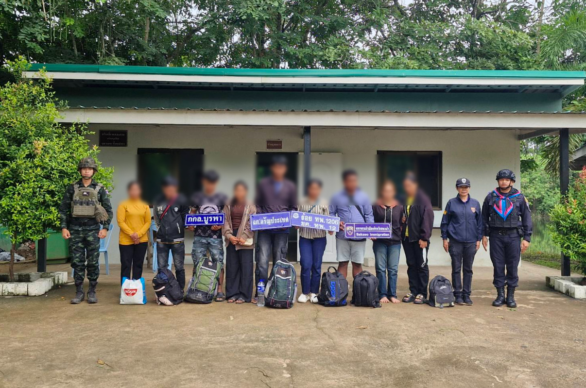 โดยในคืนวันที่ 28 ก.ย.68 ผู้นำพาได้พาคนทั้งหมดเดินเท้าลัดเลาะช่องทางธรรมชาติข้ามมายังฝั่งไทย และนำไปพักคอยในไร่อ้อยเพื่อรอรถมารับช่วงต่อ แต่ขณะที่กำลังจะเดินไปรอรถยนต์ เจ้าหน้าที่ชุดลาดตระเวนได้ตรวจพบ ทำให้ผู้นำพาชาวกัมพูชาวิ่งหลบหนีเข้าไปในความมืด ทิ้งให้ชาวกัมพูชาทั้ง 9 คน รวมถึงเด็กหญิงวัย 17 ปี ที่ติดตามมาด้วย ถูกเจ้าหน้าที่ควบคุมตัวไว้ได้ในที่สุด เจ้าหน้าที่ ร้อย.ทพ.1206 จึงได้นำตัวชาวกัมพูชาทั้งหมดส่งมอบให้ สภ.คลองน้ำใส เพื่อดำเนินคดีตามกฎหมายต่อไป
