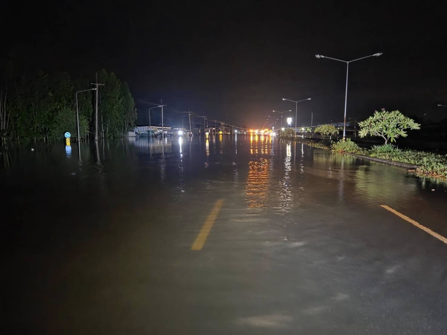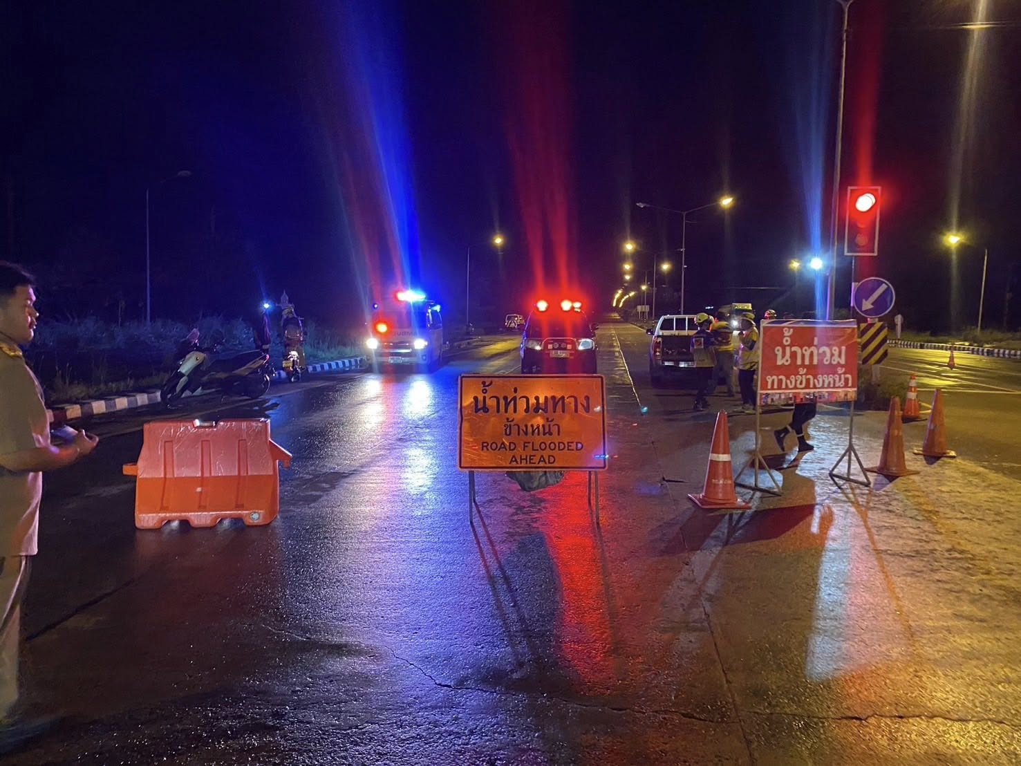 น้ำท่วมผิวพื้นผิวจราจร ถนนทางหลวงหมายเลข 24 ฝั่ง อ.สังขะ มุ่งหน้าเข้า อ.ปราสาท จนท.ปิดการจราจร จ.สุรินทร์