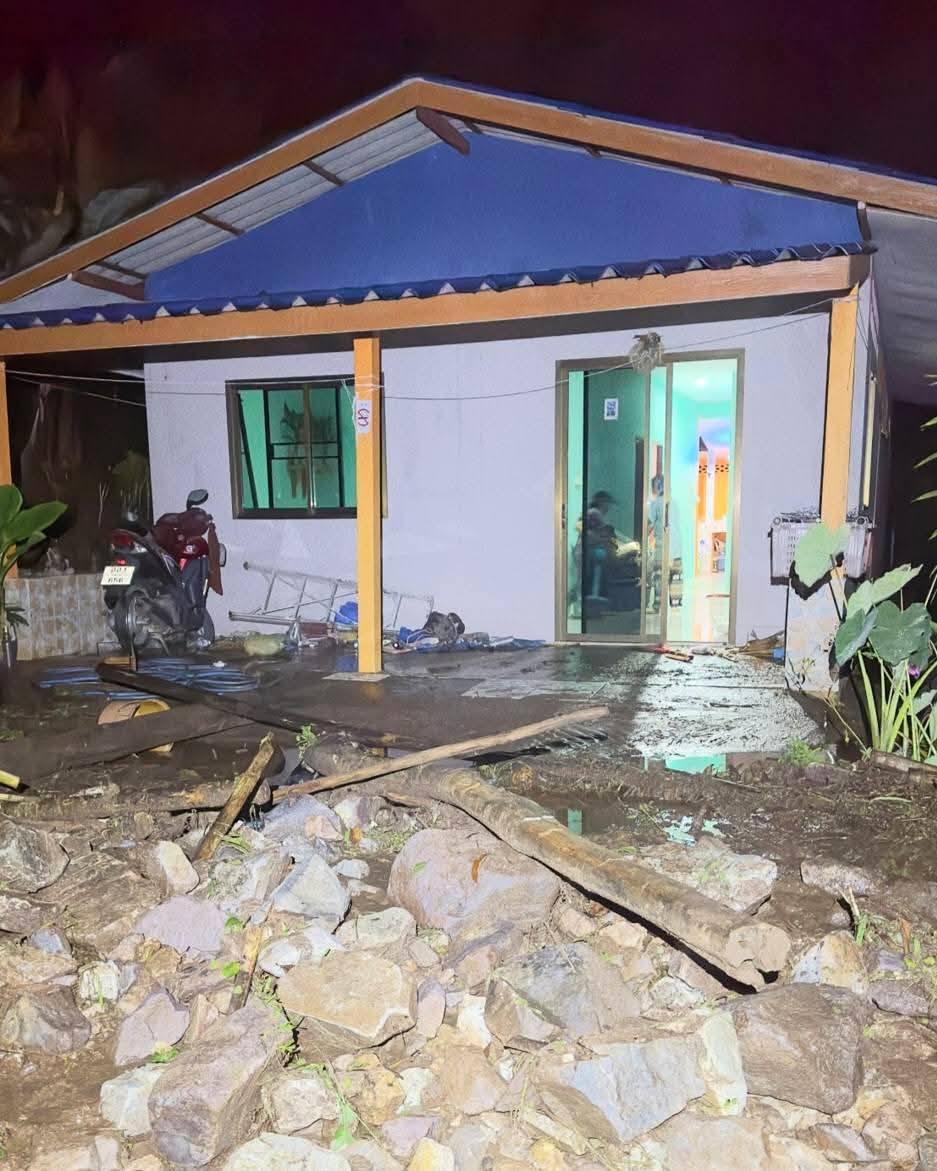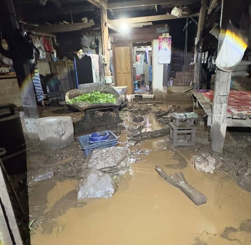 เกิดเหตุดิน-โคลนไหลลงมาตามลำห้วย บ้านเรือนประชาชนเสียหาย 4 หลัง ที่บ้านห้วยทรายขาว จ.แม่ฮ่องสอน