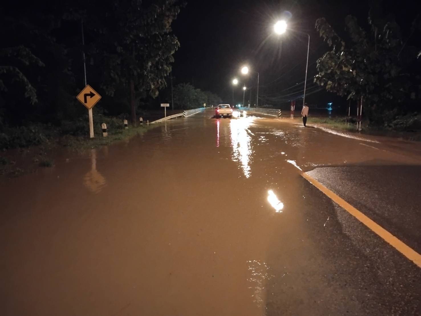 น้ำท่วมทาง บริเวณสะพานแม่น้ำป่าสัก ต.ตาดกลอย อ.หล่มเก่า จ.เพชรบูรณ์ การจราจรผ่านไม่ได้