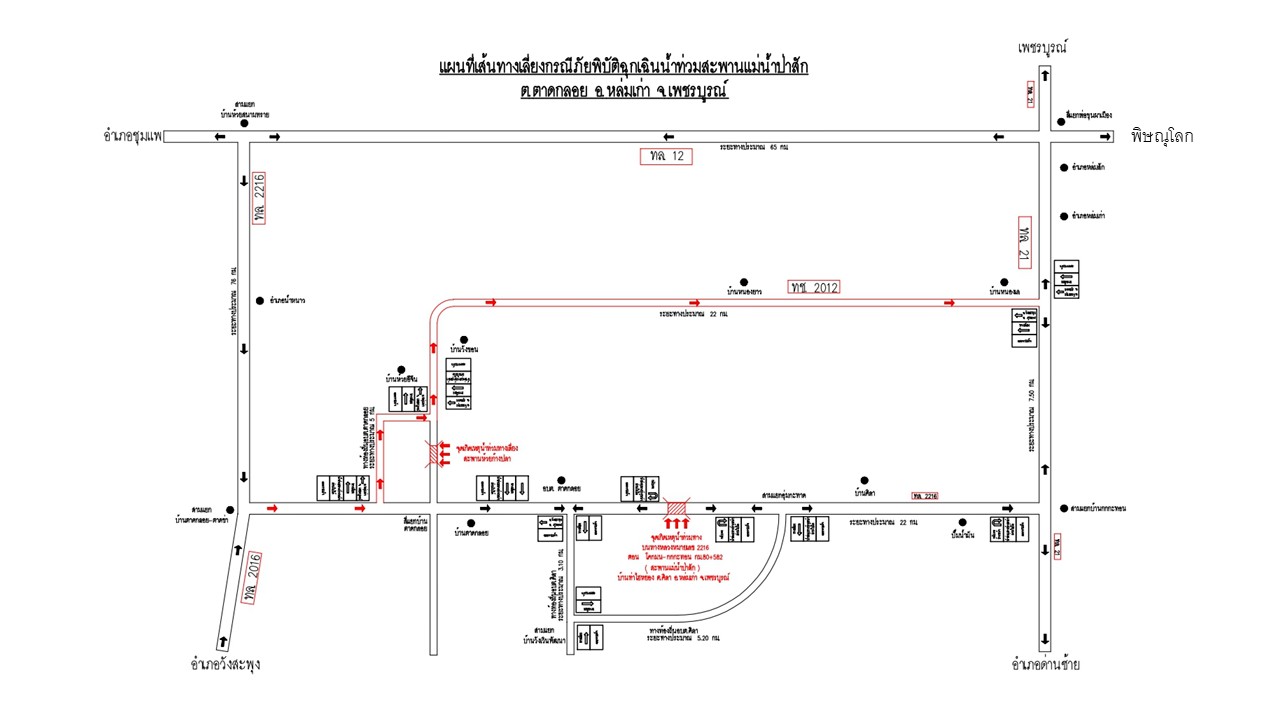 ฝนตกหนักติดต่อกัน วันที่ 30 กันยายน 2568 เวลา 05.30 น. ระดับน้ำท่วมผิวทางสูง 100 ซม. ทางหลวงหมายเลข 2216 ตอน โคกมน - กกกะทอน กม.: 80+465 ถึง กม.: 80+700 (สะพานแม่น้ำป่าสัก) ต.ตาดกลอย อ.หล่มเก่า จ.เพชรบูรณ์ การจราจรรถทุกชนิดผ่านไม่ได้