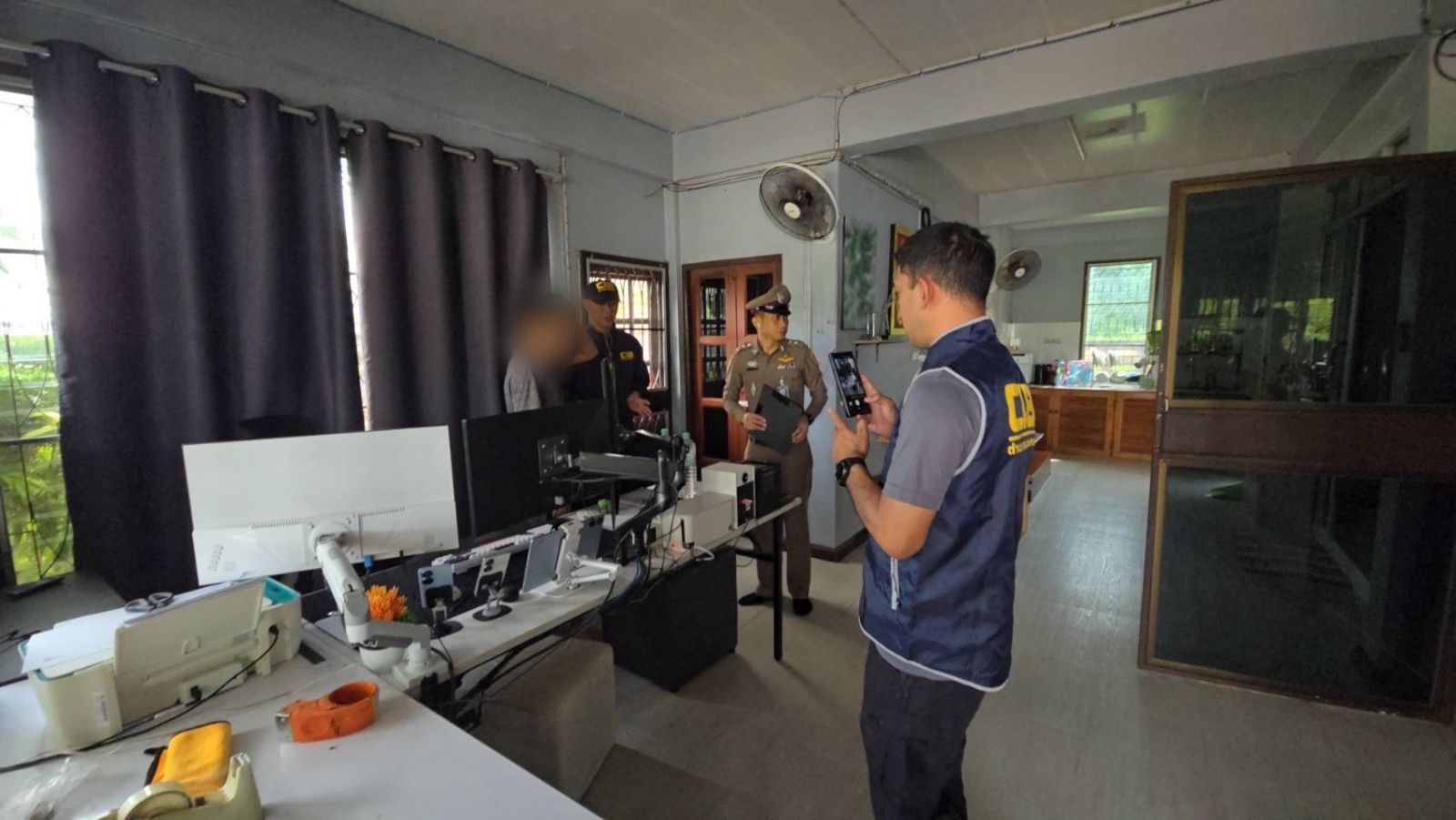 จากการตรวจค้นพบ นายดอ(นามสมมุติ)แสดงตนเป็นผู้ดูแลเพจ และกล่องรับสัญญาณ เจ้าหน้าที่ตรวจจึงได้ยึดของกลาง อาทิ กล่องรับสัญญาณ, คอมพิวเตอร์, สมุดบัญชีธนาคาร และอุปกรณ์อิเล็กทรอนิกส์อื่น ๆ เพื่อตรวจสอบขยายผลผู้ร่วมกระทำความผิดเพิ่มเติม