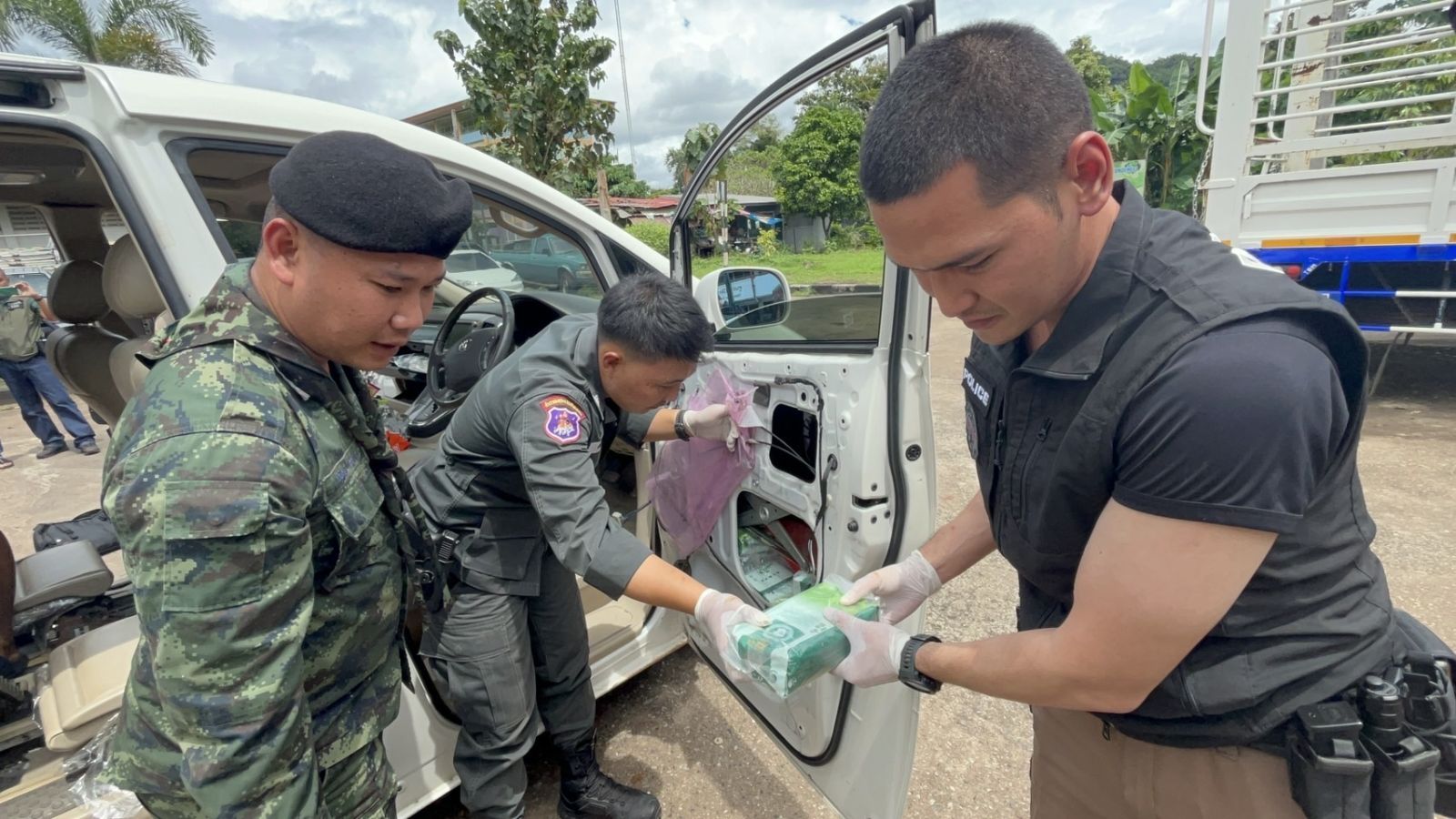 โดยในเวลา 12.00 น. เจ้าหน้าที่ฝ่ายความมั่นคง ประจำจุดตรวจร่วมสามแยกทองผาภูมิ พบรถยนต์ตู้ สีขาว หมายเลขทะเบียน จ.กาญจนบุรี ลักษณะตรงตามที่ได้รับแจ้งจากแหล่งข่าว ขับมาจาก อ.สังขละบุรี มุ่งหน้า อ.เมืองกาญจนบุรี จึงให้สัญญาณหยุดรถเพื่อตรวจสอบ พบชาย อายุ 51 ปี เป็นผู้ขับขี่ ซึ่งขณะที่เจ้าหน้าที่พูดคุยสอบถามแสดงอาการพิรุธ จึงทำการตรวจค้นภายในรถยนต์คันดังกล่าวพบว่าสภาพรถถูกดัดแปลงและซุกซ่อนยาเสพติดไว้ภายในจำนวนมาก โดยตรวจยึดของกลาง 5 รายการ