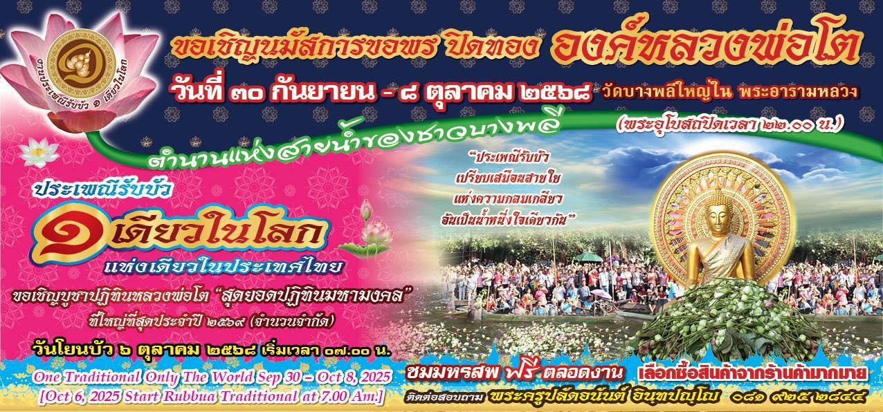 เริ่มวันแรก! 30 ก.ย. - 8 ต.ค. 68 งานประเพณีรับบัว 1 เดียวในโลก แห่งเดียวในประเทศไทย ณ วัดบางพลีใหญ่ใน พระอารามหลวง อ.บางพลี จ.สมุทรปราการ