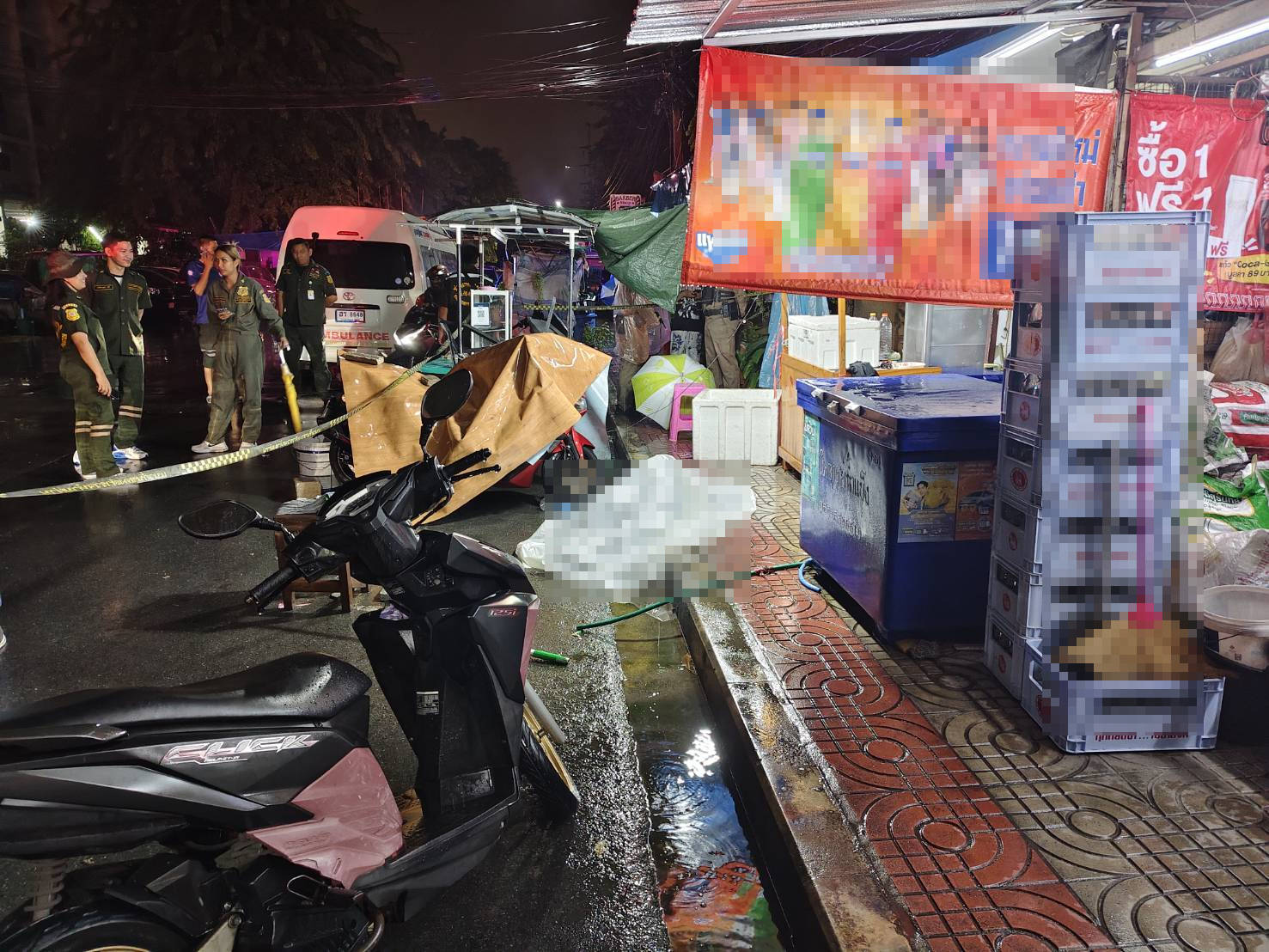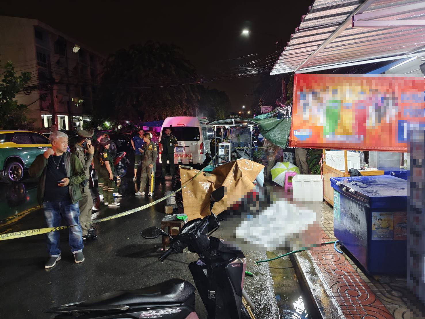 ชายถือมีดแทงคู่กรณี ถูกยิงสวนดับคาที่ บริเวณหน้าแฟลตย่านคลองจั่น