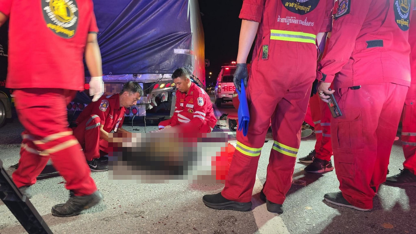 2 พี่น้อง ขับขี่และซ้อนท้ายรถจักรยานยนต์ เสียหลักชนท้ายรถบรรทุก ริมถนนบายพาสเลี่ยงเมืองชลบุรี เสียชีวิตด้วยกันทั้งคู่ จ.ชลบุรี
