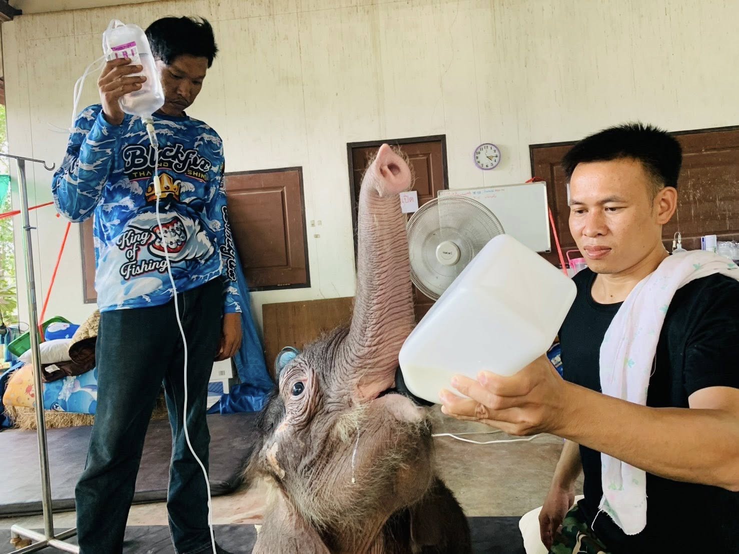 ทีมสัตวแพทย์เร่งฟื้นฟู "ข้าวต้ม" ลูกช้างป่าพลัดหลง ณ ศูนย์พัฒนาการจัดการสัตว์ป่าบึงฉวาก