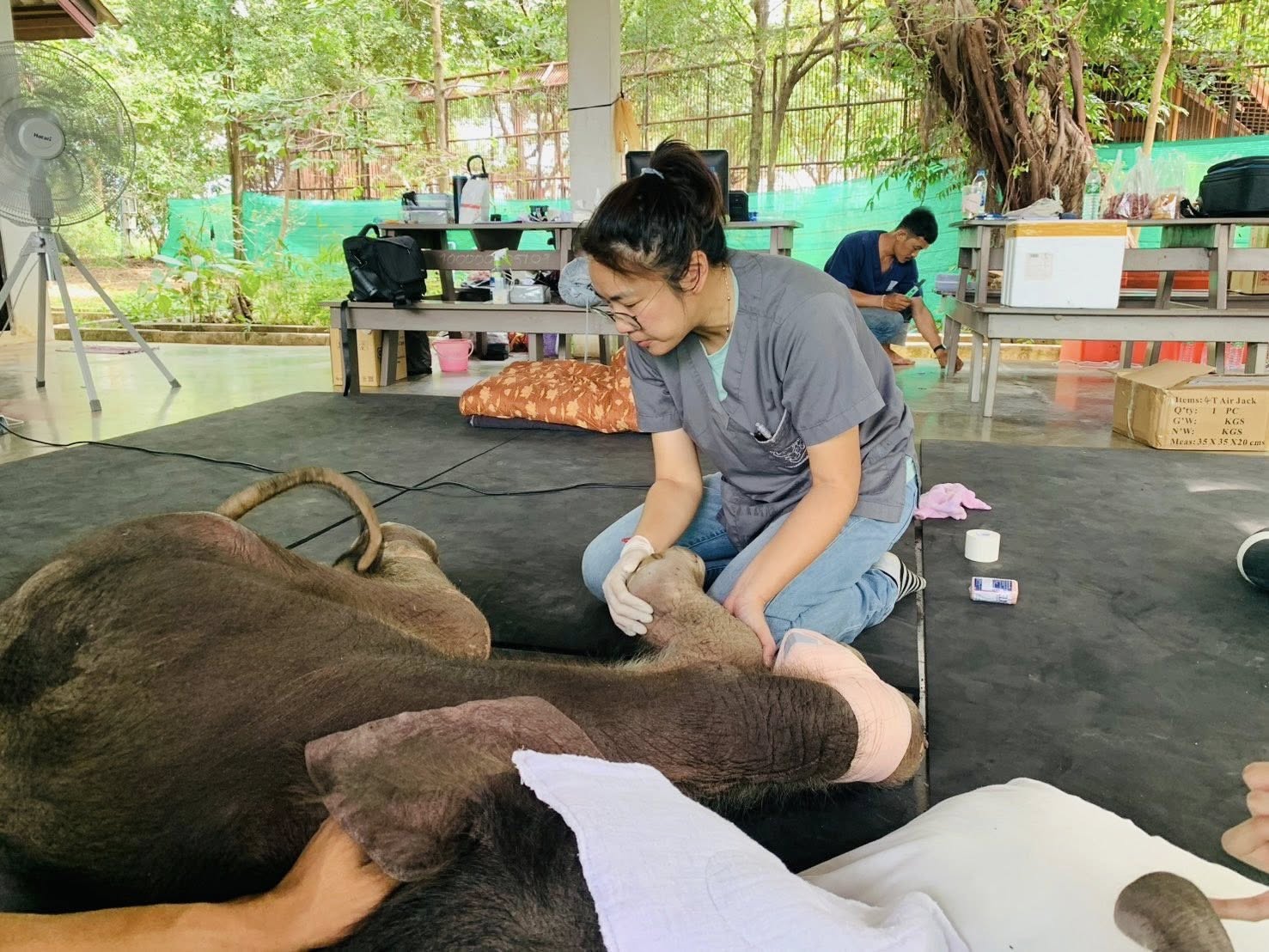 โดยมี น.สพ. นภัส เสวกวรรณ นายสัตวแพทย์ กลุ่มงานจัดการสุขภาพสัตว์ป่า และทีมพี่เลี้ยงร่วมปฏิบัติการดังกล่าว