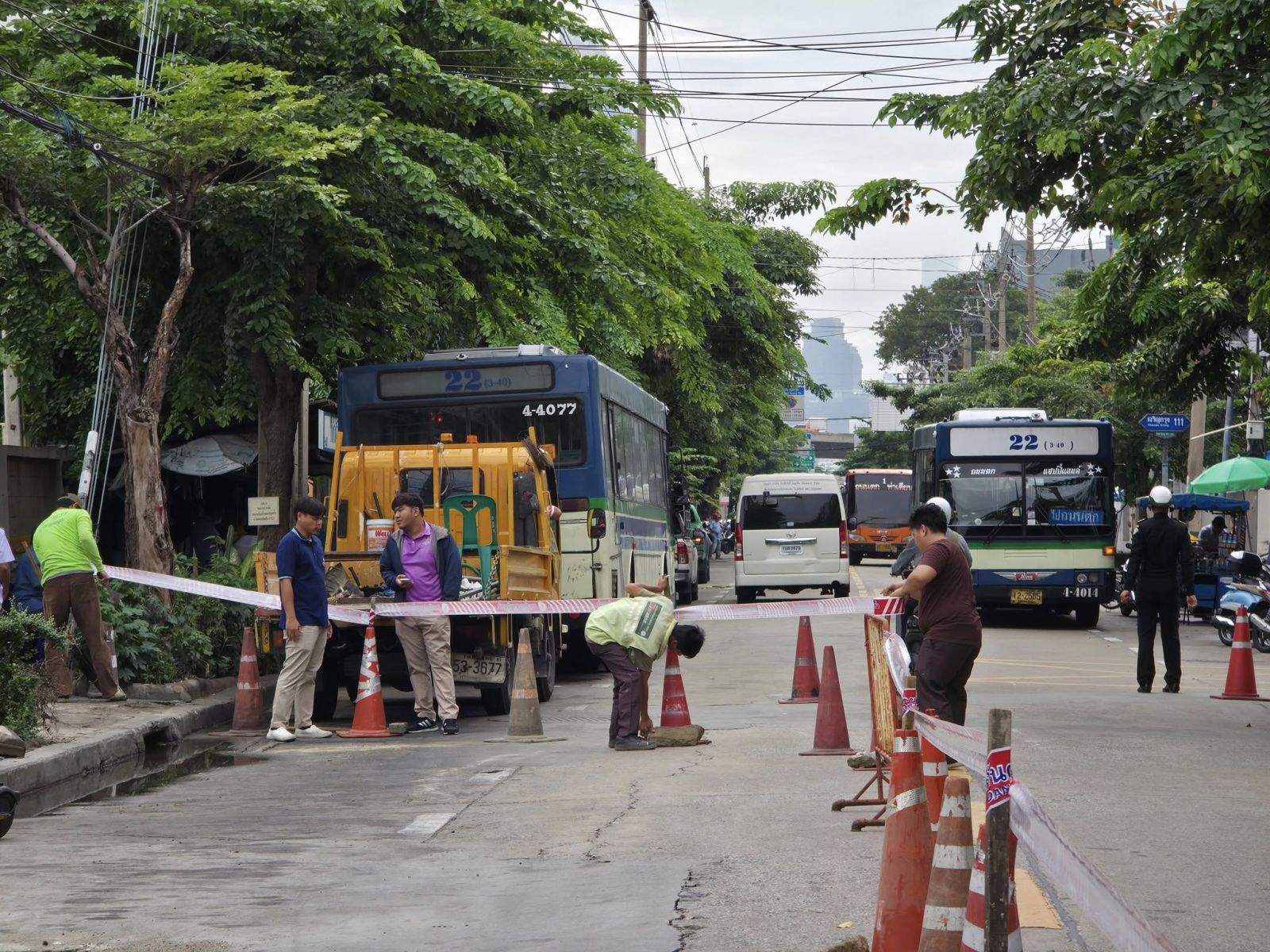 1 ต.ค. 68 เวลา 08.00 น. สำนักงานเขตบางคอแหลม ลงพื้นที่ตรวจสอบเหตุถนนทรุด บริเวณด้านหน้าการไฟฟ้ายานนาวา พบว่าจุดที่เกิดการทรุดตัวเป็นโพรงดินใต้พื้นถนนคอนกรีต ลึกประมาณ 1-2 เมตร ถนนเกิดการแอ่นตัว พื้นที่เกิดเหตุมีความยาวประมาณ 26 เมตร ความกว้างประมาณ 9 เมตร มีกำแพงรั้วของเอกชนได้รับความเสียหาย ยาวประมาณ 20 เมตร และต้องปิดการจราจรบริเวณด้านหน้าการไฟฟ้าเขตยานนาวา 2 ช่องจราจร