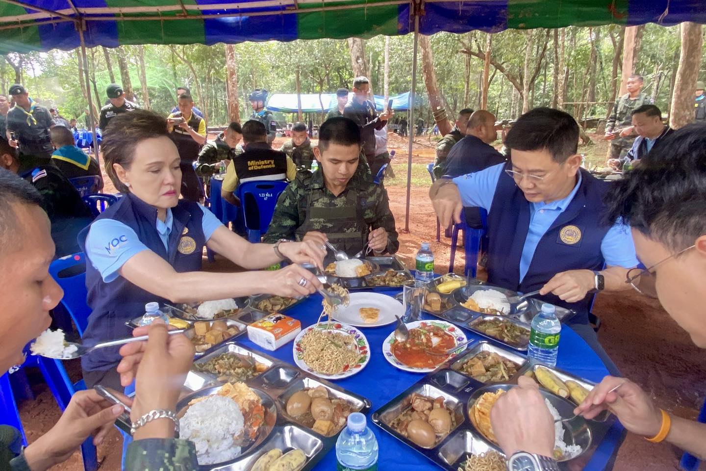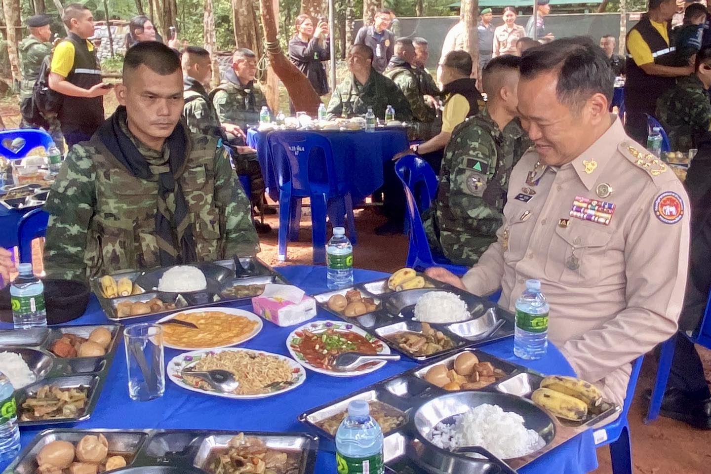 จากนั้น เวลา 14.00 น. นายอนุทิน พร้อมคณะลงพื้นที่ ฐานปฏิบัติการสามแยก กองพันทหารราบที่ 21 หน่วยเฉพาะกิจที่ 2 กองกำลังสุรนารี อ.พนมดงรัก จ.สุรินทร์ กิจกรรมสำคัญ ตรวจเยี่ยมกำลังพลชายแดนไทย–กัมพูชา และล้อมวงรับประทานอาหารกลางวันถาดหลุมกับทหาร โดยนายกฯ ลงมือตักพะโล้เสิร์ฟทหารด้วยตนเอง ก่อนพูดคุยถามไถ่ความเป็นอยู่ และให้กำลังใจเจ้าหน้าที่