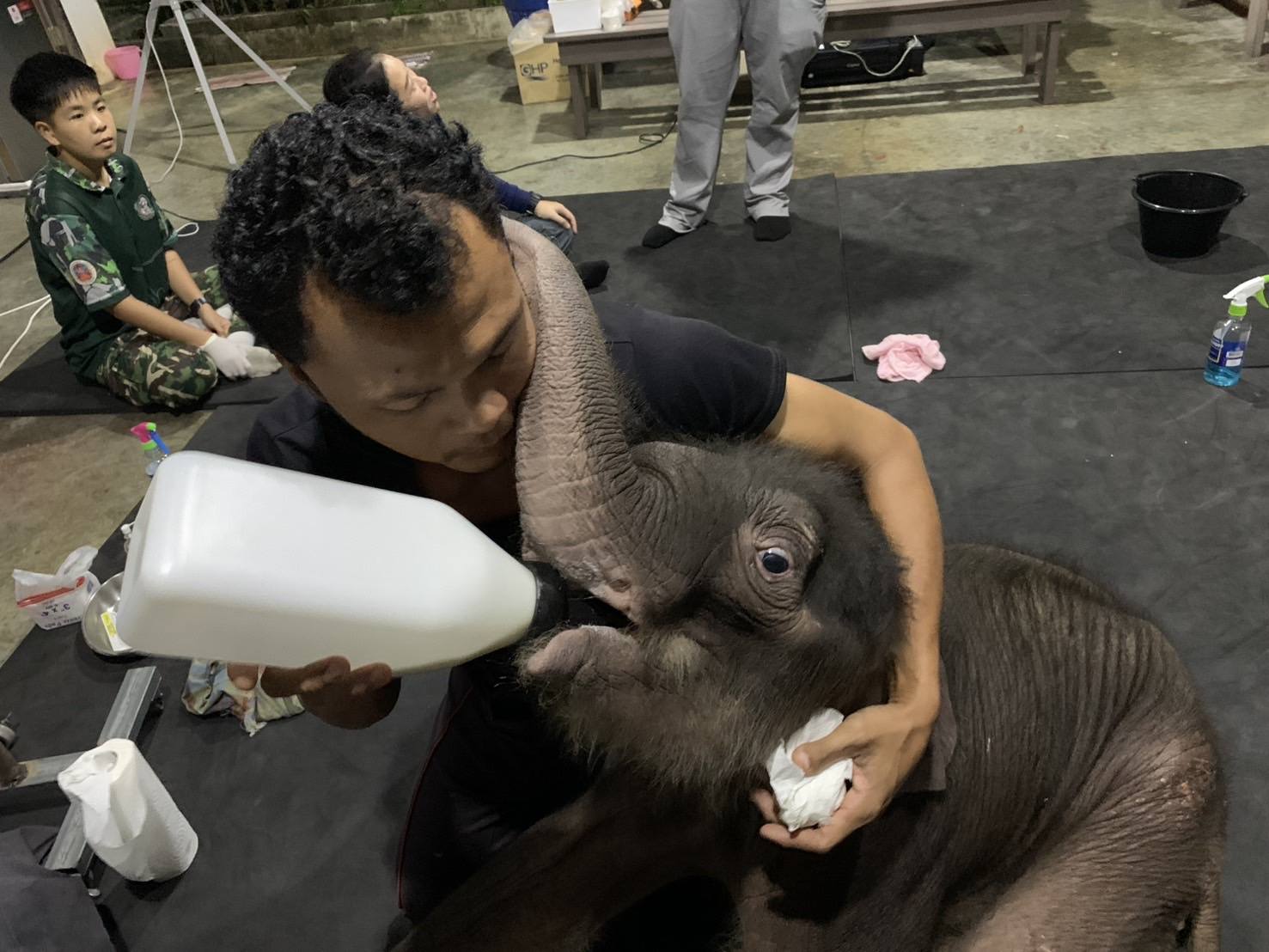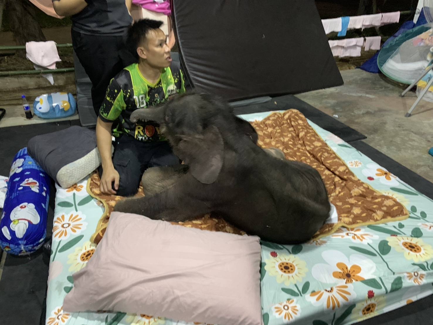 ทีมสัตวแพทย์เน้นย้ำการบำบัดฟื้นฟูอย่างเข้มข้น โดยมีการนวดกระตุ้นกล้ามเนื้อและยืดเหยียดขาอย่างต่อเนื่อง พร้อมทั้งให้สารน้ำทางหลอดเลือดดำ และให้โปรไบโอติกเพื่อปรับสมดุลในระบบทางเดินอาหาร เพื่อเร่งให้ลูกช้างสามารถช่วยเหลือตัวเองได้มากขึ้น