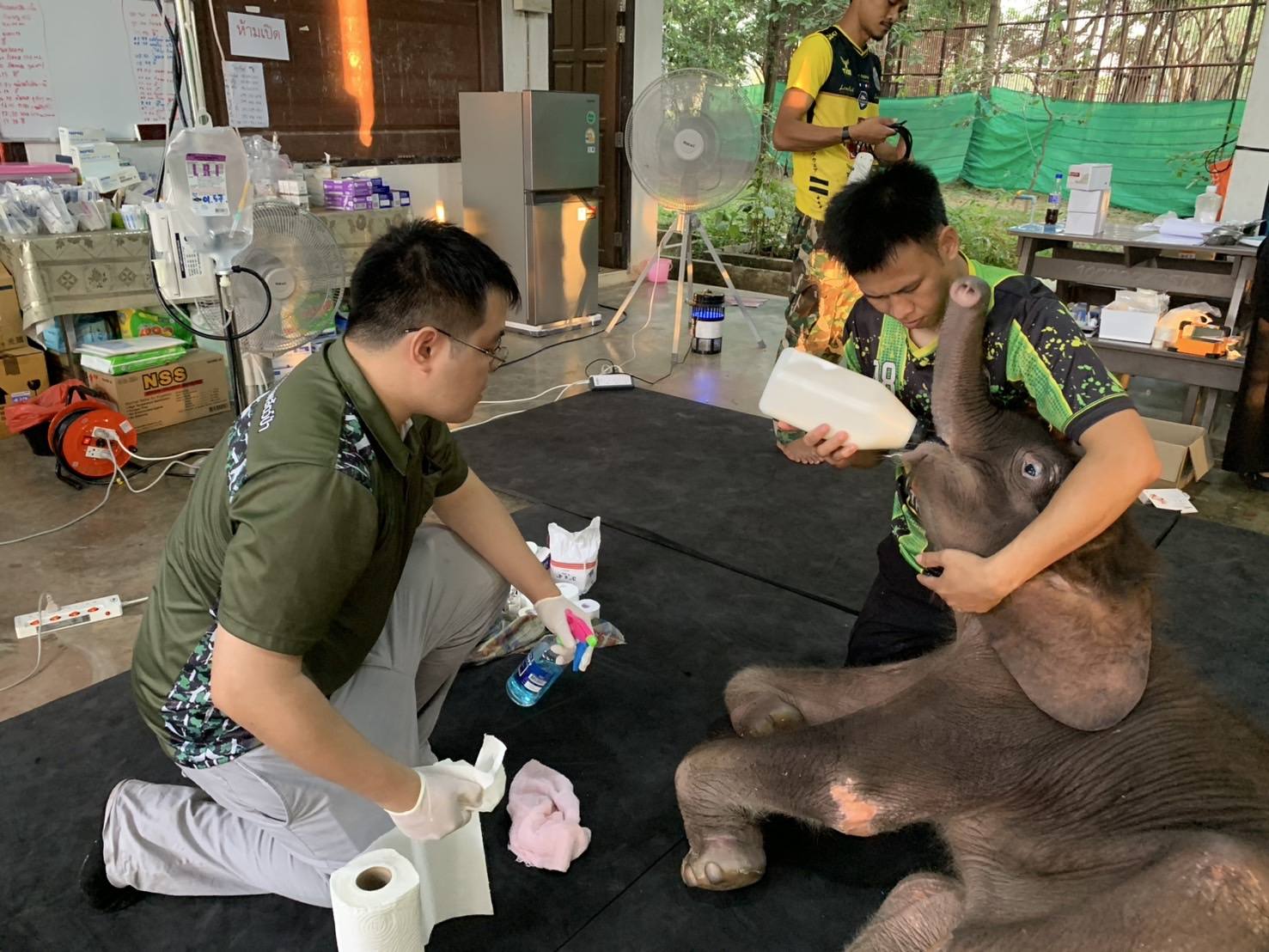 ลูกช้างป่า "ข้าวต้ม" อาการดีขึ้นต่อเนื่อง ทีมสัตวแพทย์เผยกำลังขาแข็งแรงขึ้น การขับถ่ายเป็นปกติ