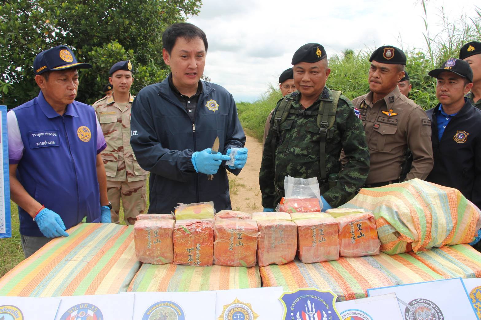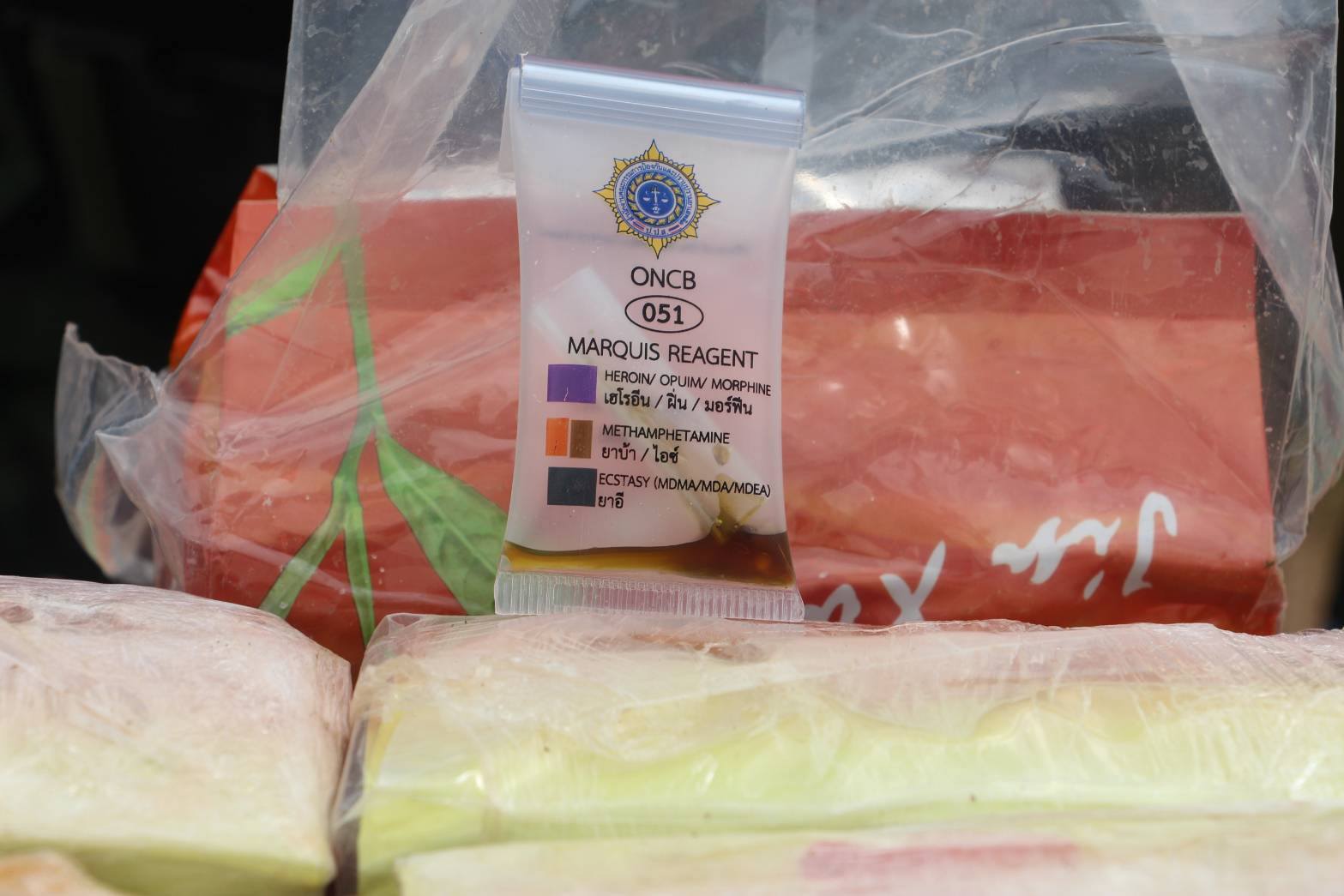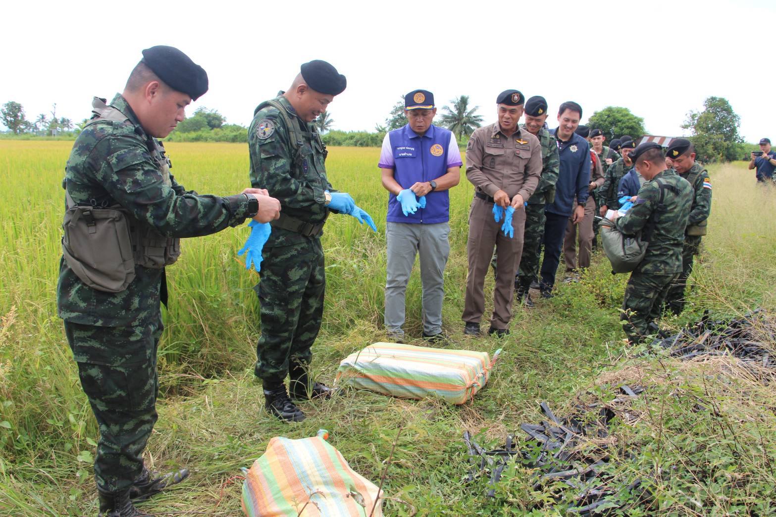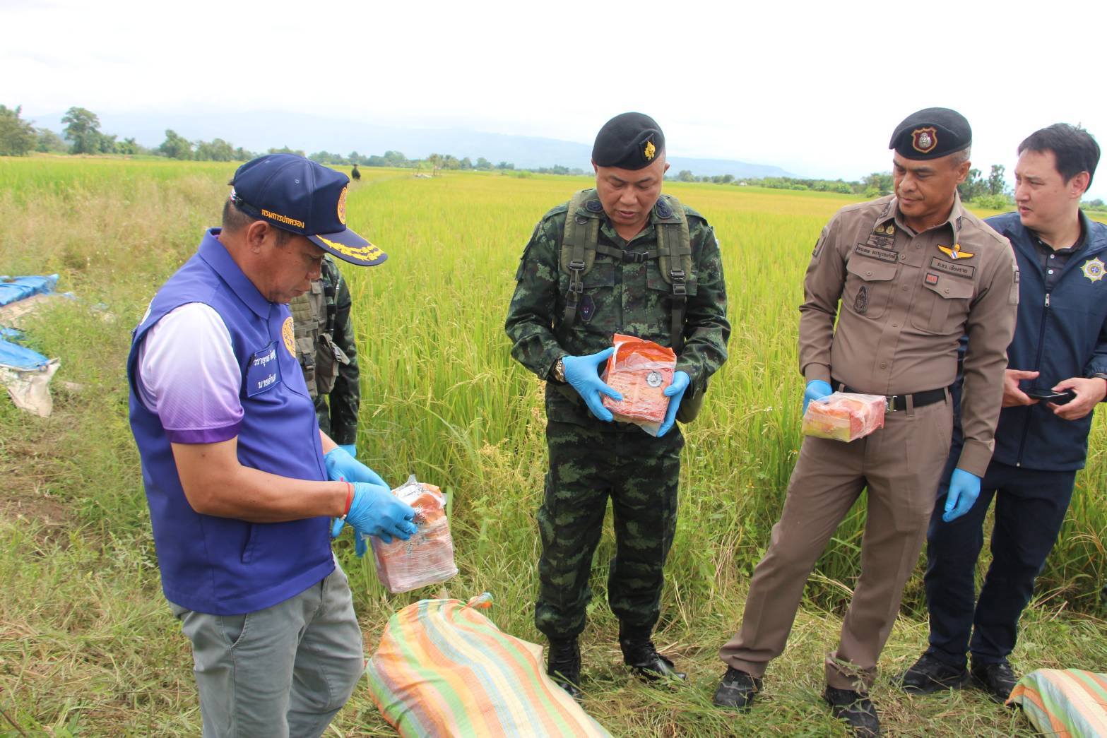 กระทั่งฟ้าสางเจ้าหน้าที่ตรวจสอบพื้นที่โดยรอบ พบกระสอบปุ๋ยต้องสงสัยจำนวน 10 กระสอบ ตกกระจายอยู่ในบริเวณเกิดเหตุ หน่วยจึงจัดกำลัง 2 ชุดเข้าควบคุมพื้นที่พบว่ากระสอบทั้งหมดบรรจุยาเสพติดให้โทษประเภทที่ 1 (ไอซ์) รวม 10 กระสอบ น้ำหนักรวมประมาณ 245 กิโลกรัม แบ่งเป็น 9 กระสอบ น้ำหนักกระสอบละ 25 กิโลกรัม และอีก 1 กระสอบ น้ำหนัก 20 กิโลกรัมซึ่งทางเจ้าหน้าที่ได้ประสานหน่วยงานด้านความมั่นคงและส่วนที่เกี่ยวข้อง เข้าร่วมตรวจสอบของกลาง พร้อมเร่งขยายผลหาตัวผู้ลักลอบลำเลียง เพื่อดำเนินคดีตามกฎหมายต่อไป