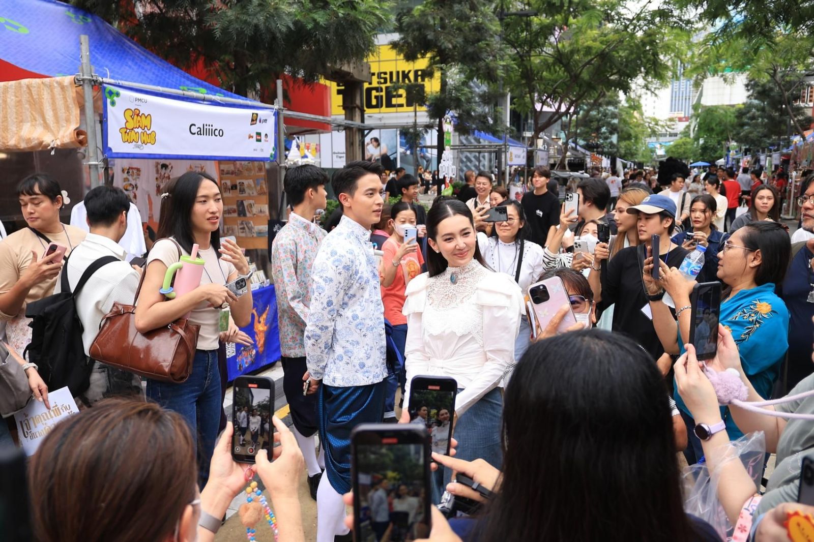 ทันทีที่ทั้งคู่ปรากฏตัว ก็สร้างความเซอร์ไพรส์และเรียกเสียงฮือฮาจากผู้คนที่เดินผ่านไปมาได้ไม่น้อย เพราะนอกจากจะได้เจอ “เจ้าคุณพี่” กับ “แม่คำดวง” ตัวจริงเสียงจริงแล้ว ยังมีโมเมนต์ที่น่ารักและอบอุ่นกับผู้โชคดีอย่าง “น้องฮัท รวิภู” และ “น้องอิมิลี่” ที่แต่งองค์ทรงเครื่องตามแบบในละครมาร่วมกิจกรรมครั้งนี้ด้วย พอได้เจอพี่เจมส์และพี่เบลล่าแบบใกล้ชิด ทำเอาน้อง ๆ ถึงกับยิ้มไม่หุบ ทำให้บรรยากาศเต็มไปด้วยเสียงหัวเราะ และความสนุกยังไม่หมดเพียงเท่านี้ เพราะเจมส์กับเบลล่ายังพาน้อง ๆ ไปทำกิจกรรมชิคๆ กันต่อที่ร้านถ่ายสติ๊กเกอร์ชื่อดัง Sculpture Museum สยามสแควร์ ซอย 3 บอกเลยว่ามีทั้งความฮาและความน่ารักจนคนในร้านแอบยิ้มตาม หลังจากนั้นทั้งคู่ยังถือโอกาสชวนกันเดินเล่นถ่ายรูปแบบคนกรุง พร้อมปล่อยพลังความน่ารักให้แฟน ๆ ที่บังเอิญเจอได้เข้ามาขอถ่ายรูปกันไม่หยุด เรียกได้ว่าการเข้าพระนครครั้งนี้ของทั้งคู่เต็มไปด้วยความสนุกและความอบอุ่นหัวใจจริง ๆ ส่วนแฟนละครที่อยากมีโมเมนต์สุดพิเศษแบบนี้บ้าง สามารถไปร่วมถ่ายรูปกับ “เจ้าคุณพี่กับอีนางคำดวง” ผ่านจอ LED 3 มิติสุดตระการตาได้ ตั้งแต่วันที่ 1–31 ตุลาคมนี้ที่ ลาน Parc Paragon และ จอ Interchange แยกอโศกมนตรี นอกจากจะได้ภาพสวยๆ ไว้ลงโซเชียลแล้ว ยังมีลุ้นรับของที่ระลึกสุดพิเศษจากช่อง 3 อีกด้วย!