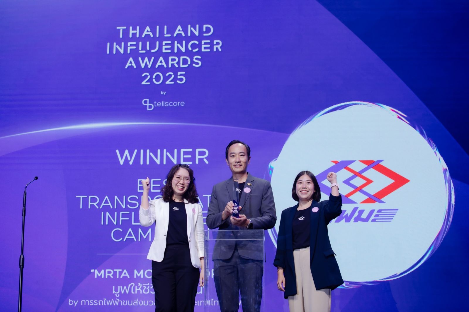 การรถไฟฟ้าขนส่งมวลชนแห่งประเทศไทย (รฟม.) ได้รับรางวัล Best Transportation Influencer Campaign ในสาขา Brand and Agency Awards จากเวที Thailand Influencer Awards 2025 ต่อเนื่องเป็นปีที่ 3 สะท้อนถึงความสำเร็จในการนำกลยุทธ์ Influencer Marketing มาใช้ในการสื่อสารการตลาดผ่านช่องทางออนไลน์อย่างมีประสิทธิภาพ โดยมี นายยุทธศักดิ์ ชื่นใจ ผู้อำนวยการฝ่ายพัฒนาธุรกิจ พร้อมเจ้าหน้าที่ฝ่ายพัฒนาธุรกิจ รฟม. ขึ้นรับรางวัล ณ ICON HALL ชั้น 7 ศูนย์การค้า ICONSIAM