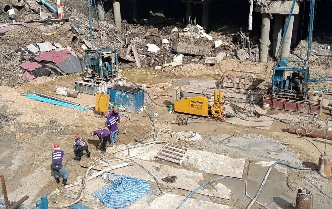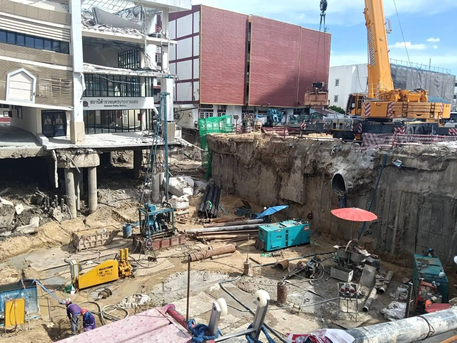 ทั้งนี้ ผู้รับจ้างอยู่ระหว่างนำเครื่องจักร สำหรับงานอัดฉีดวัสดุผสมเสริมเสถียรภาพของดินด้วยแรงดันต่ำ (Low Pressure Grout) เพื่อเสริมเสถียรภาพของดิน เพิ่มเติม