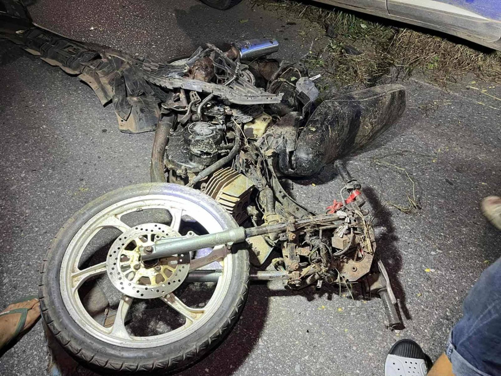 รถนั่งส่วนบุคคลชนกับรถจักรยานยนต์แล้วทับซ้ำ บนถนนเส้นทางมุกดาหาร - คำชะอี มีผู้เสียชีวิตเป็นคุณตาวัย 73 ปี จ.มุกดาหาร