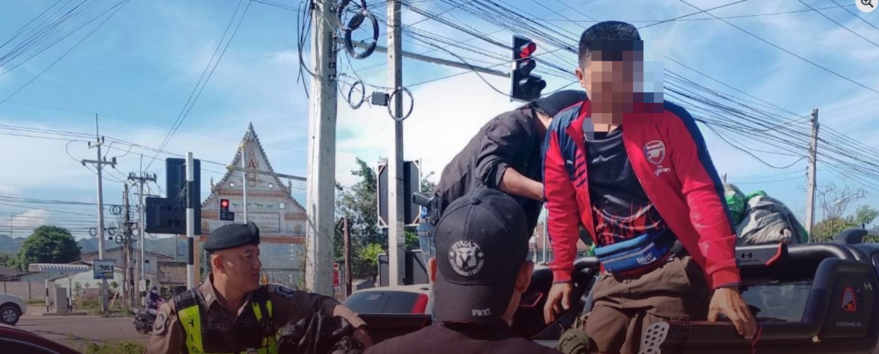 ตำรวจทางหลวงไทรโยค พบรถยนต์ ลักษณะบรรทุกหนักและใช้ความเร็วสูงมีพิรุธ 1 คัน วิ่งมาบน ทล.3188 ลาดหญ้า ติดไฟแดงสี่แยกหนองบัว จ.กาญจนบุรี จึงได้แสดงตัวขอตรวจสอบพบคนขับ เป็นชาย อายุ 44 ปี