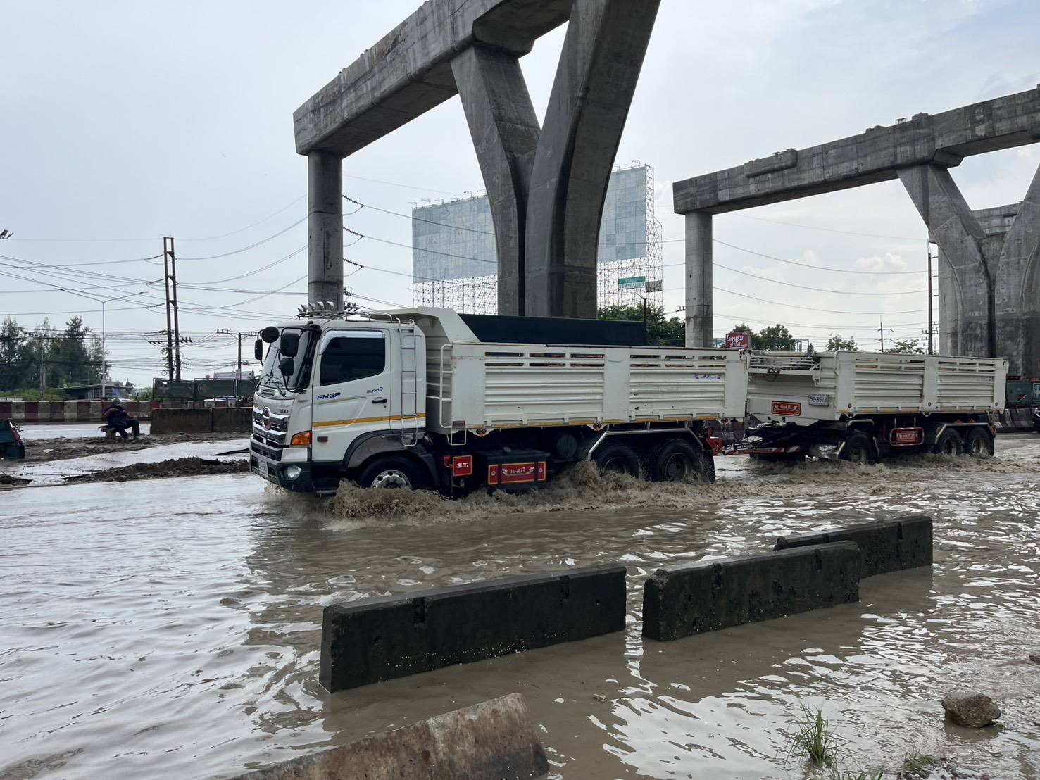 ที่มา ภาพและข้อมูลจาก สภ. เมืองสมุทรสาคร รายงานจากไลน์กลุ่มน้ำท่วมพระราม2