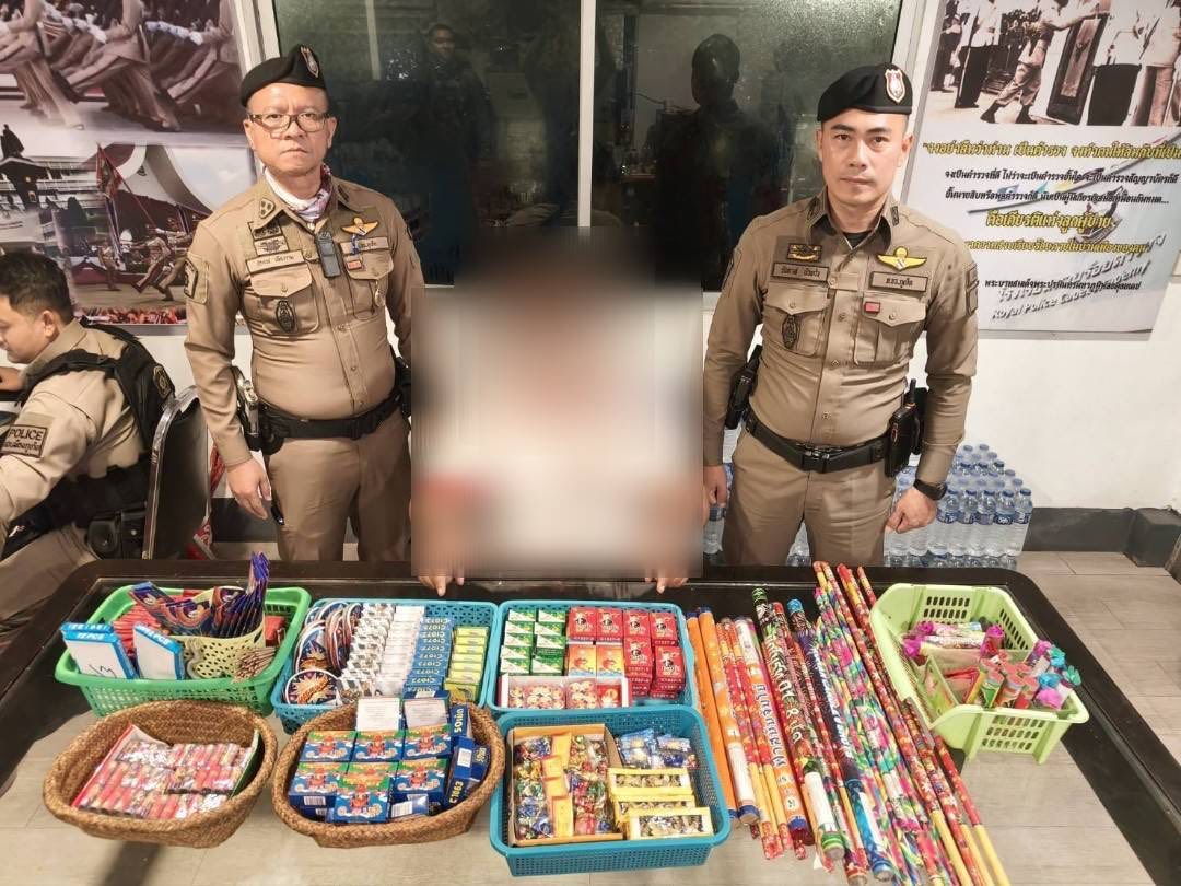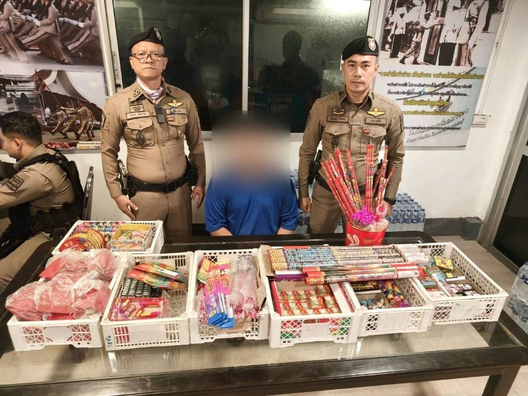 สายตรวจ สภ.เมืองภูเก็ต จับกุม 3 คนขายพลุ ประทัด ไม่ได้รับอนุญาต ที่บริเวณสะพานหินภูเก็ต