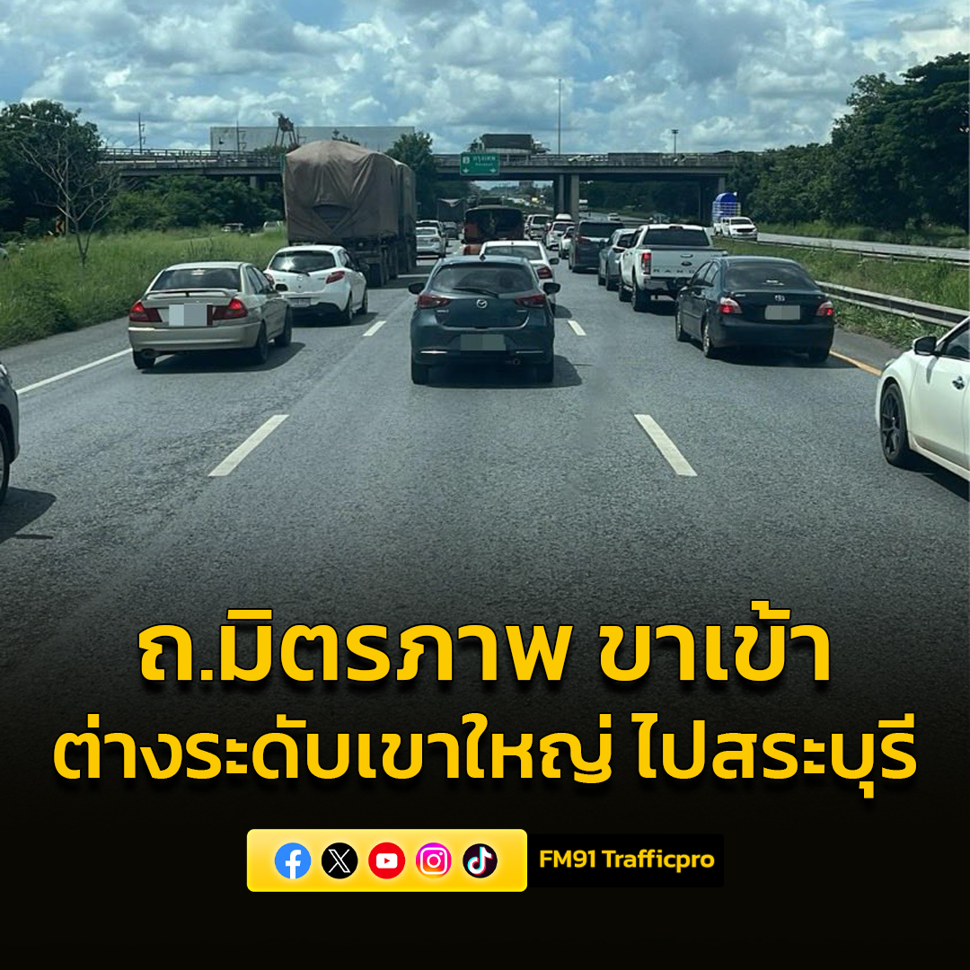 ด้านเพจ ถนนมิตรภาพ รถติดบอกด้วย รายงานจราจร ภาพนี้ เมื่อเวลา 12.00 น. ถนนมิตรภาพ มุ่งหน้าสระบุรี ช่วงต่างระดับเขาใหญ่ การจราจรเริ่มติดขัดแล้ว ในพื้นที่มีงานทำถนนด้วย