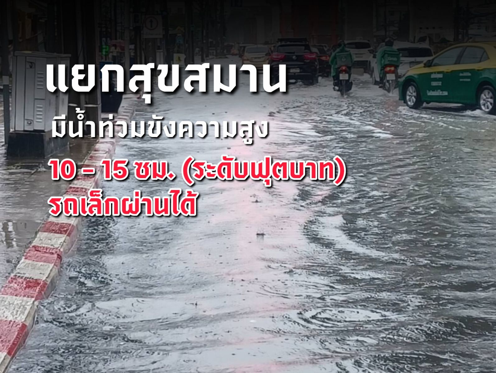(13 ต.ค. 68) ช่วงบ่ายนี้ มีฝนตกหนักในพื้นที่เขตลาดกระบัง บริเวณ แยกสุขสมาน ถนนลาดกระบัง ฝั่งขาเข้าและขาออก ขณะนี้ มีน้ำท่วมขังสูงประมาณ 10–15 ซม. ระดับเท่าฟุตปาธ รถเล็กสามารถสัญจรผ่านได้ เจ้าหน้าที่กำลัง เร่งระบายน้ำอย่างต่อเนื่อง เพื่อให้พื้นที่กลับสู่สภาวะปกติโดยเร็ว
