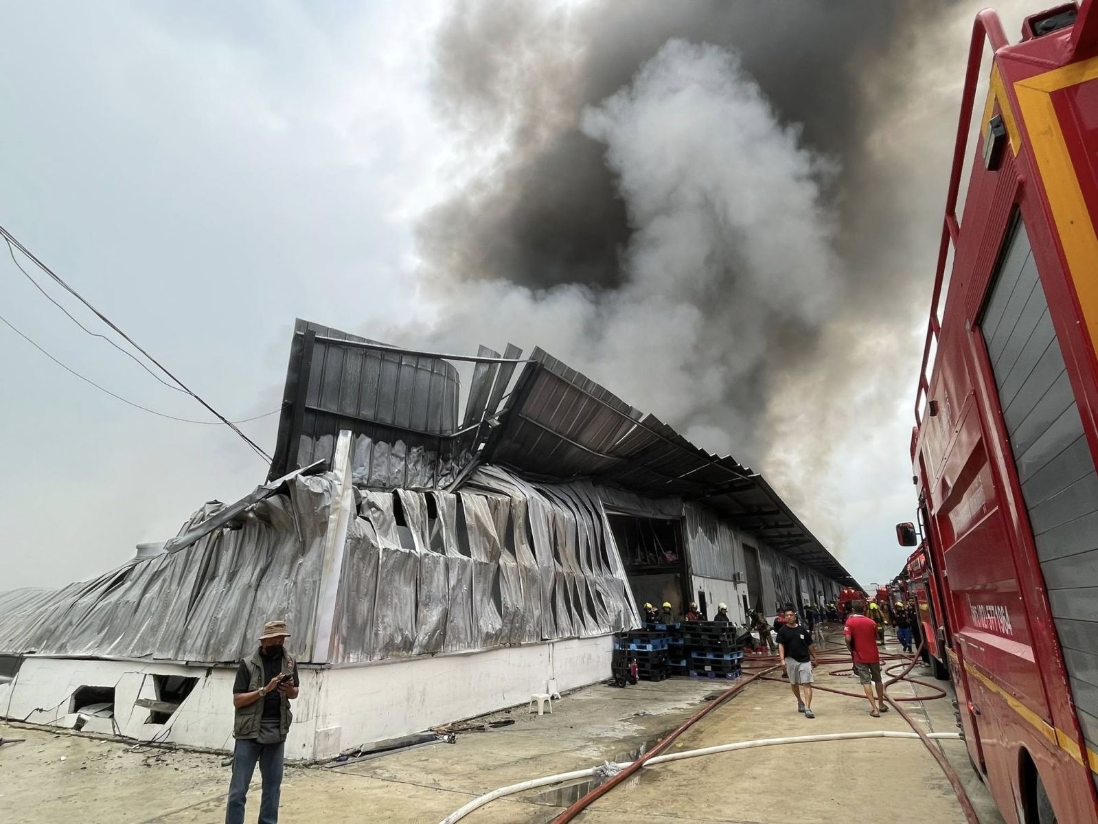 ที่เกิดเหตุ พบว่าเพลิงไหม้โกดังเก็บสินค้า ของบริษัทดังกล่าว ลักษณะเป็นโกดังให้เช่าเก็บสินค้าออนไลน์ เจ้าหน้าที่ดับเพลิงอยู่ระหว่างระงับเหตุ ขณะนี้อาคารต้นเพลิงโครงสร้างถล่มลงมา และลุกลามไปยังอาคารใกล้เคียงประมาณ 5 โกดัง