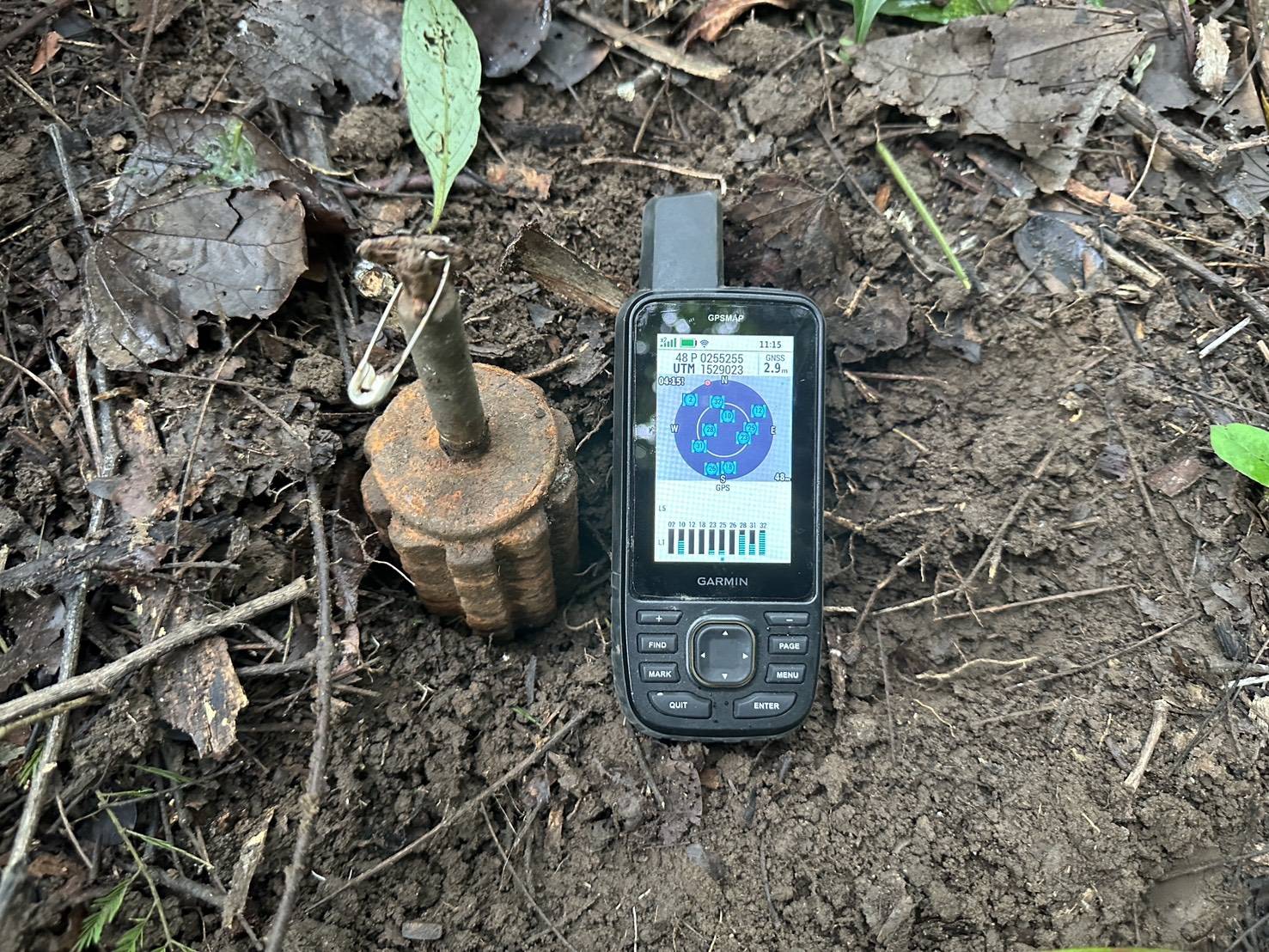 จากนั้นไม่ห่างกันในเวลา 11.32 น. ตรวจพบทุ่นระเบิดสังหารบุคคล ชนิดสะเก็ดระเบิด POMZ-2 อีกจำนวน 1 ทุ่น สภาพพร้อมทำงาน ที่พิกัด 48PTA 55264 29010