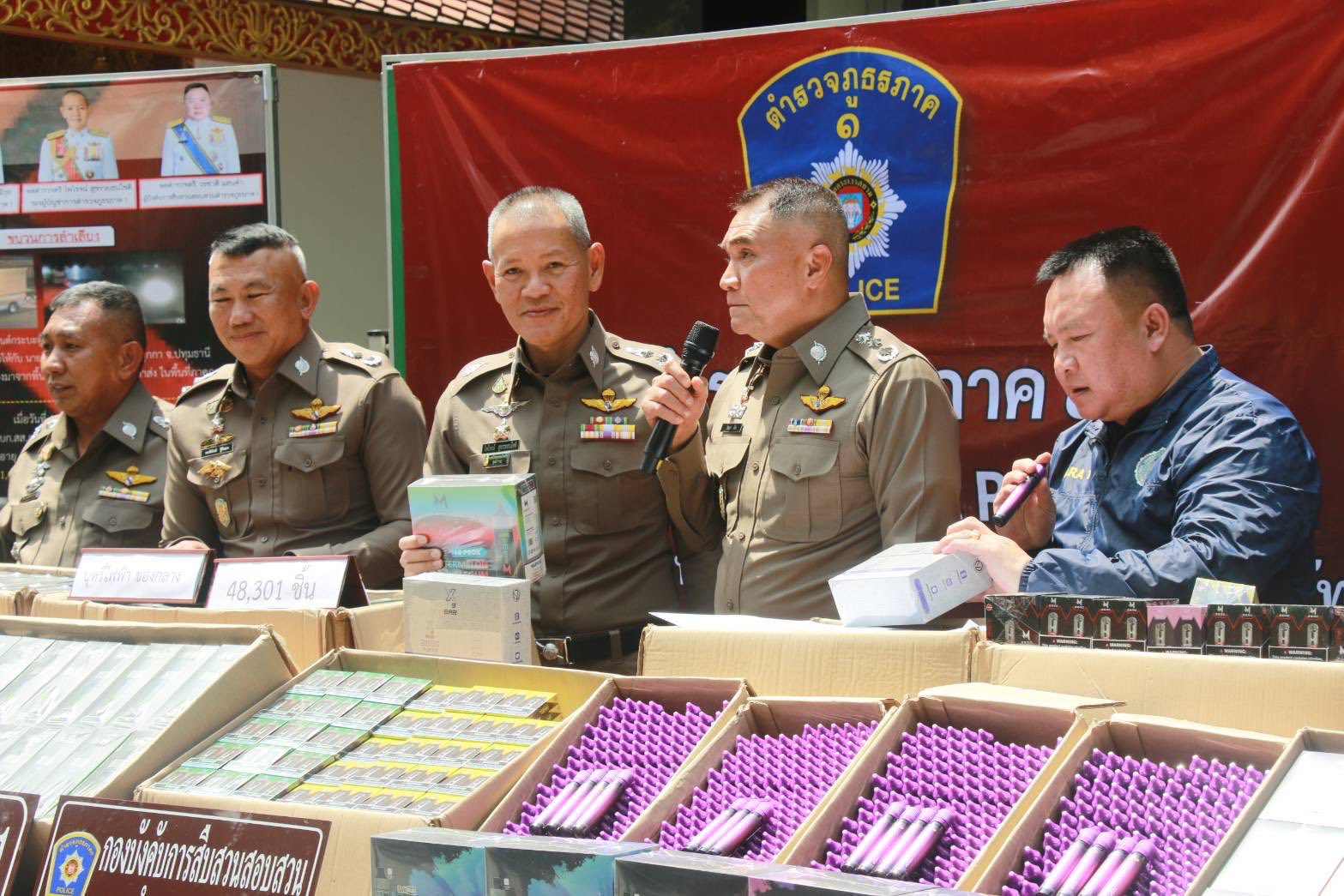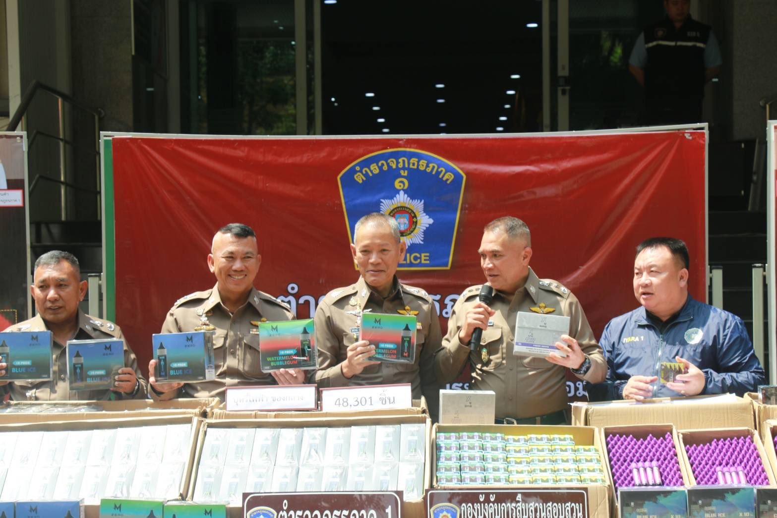 โดย พล.ต.ท.วัฒนา ยี่จีน ผบช.ภ.1 กล่าวว่า นายอนุทิน ชาญวีรกูล นายกรัฐมนตรี พล.ต.อ. กิตติรัฐ พันธุ์เพ็ชร์ ผบ.ตร. ได้สั่งการให้ตำรวจกวาดล้างจับกุมบุหรี่ไฟฟ้า เพื่อไม่ให้แพร่ระบาดแก่เยาวชน โดยก่อนหน้านี้เมื่อวันที่ 28 ก.ย.68 เจ้าหน้าที่ตำรวจสืบสวนภาค 1 ได้จับกุมตัวนายตา (นามสมมุติ) อายุ 31 ปี พร้อมของกลาง บุหรี่ไฟฟ้า จำนวน 4,476 ชิ้น รวมมูลค่าประมาณ 3,088,440 บาท ได้ที่แยกไฟแดงนิคมสร้างตนเอง ต.นิคมสร้างตนเอง อ.เมือง จ.ลพบุรี และได้ขยายผลเพื่อติดตามจับกุมขบวนการลักลอบขนบุหรี่ไฟฟ้าเข้ามาจำหน่ายพื้นที่ภาคกลาง ซึ่งขบวนการนี้ขนลำเลียงมาจากภาคใต้