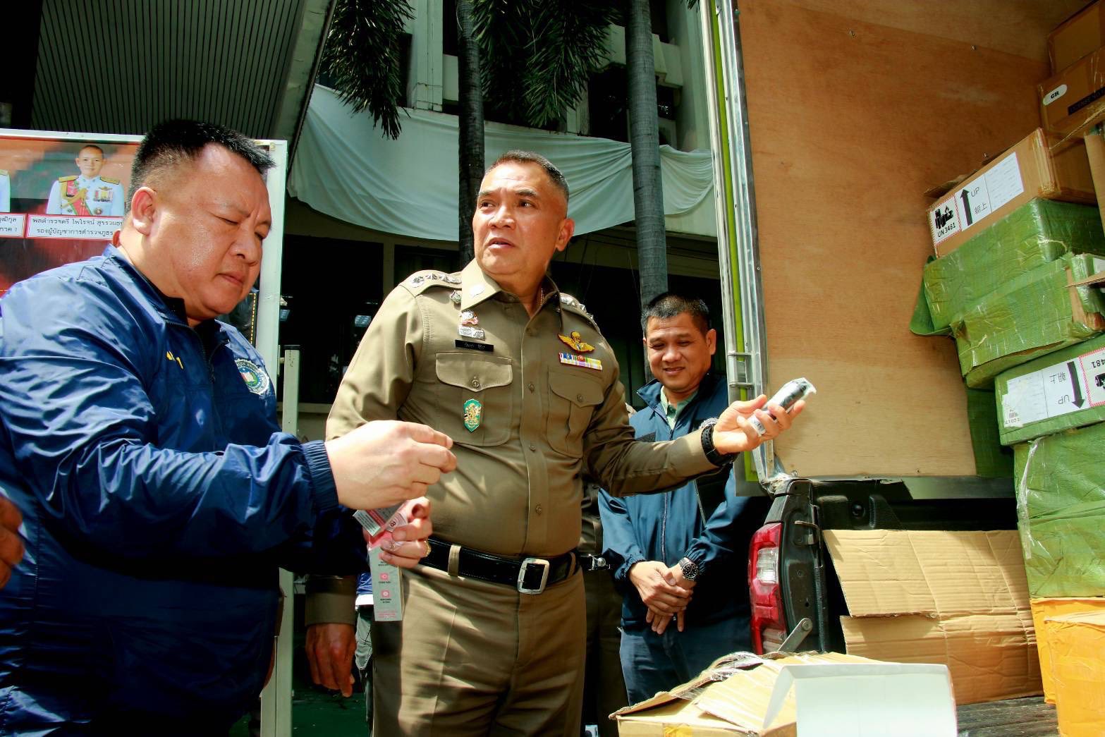 สืบภาค 1 จับกุมขบวนการลักลอบขน "บุหรี่ไฟฟ้า" จากภาคใต้ รวบ 2 ผู้ต้องหา พร้อมของกลาง จำนวน 48,301 ชิ้น