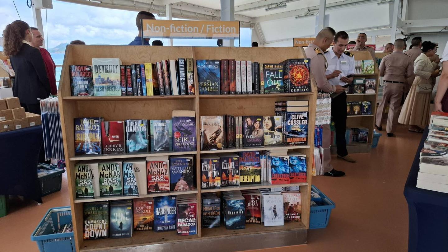 (14 ตุลาคม 2568) พลเรือโท ภานุมาศ ธนะพานิช ผู้บัญชาการฐานทัพเรือสัตหีบ เป็นประธานเปิดงาน “หนังสือลอยน้ำนานาชาติ” ที่มาเยือนประเทศไทยบนเรือ MV Doulos Hope (ดูโลส โฮป) ซึ่งจอดเทียบท่า ณ ท่าเรือจุกเสม็ด ฐานทัพเรือสัตหีบ จังหวัดชลบุรี โดยมี Mr. Jonathan Birdsall Coptain MV Doulos Hope ,Mr. Nidhin. Sebastian Director และลูกเรือนานาชาติ ร่วมให้การต้อนรับ