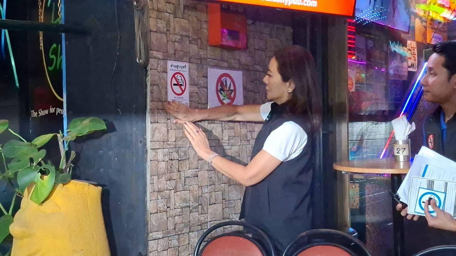 วันที่ 16 ต.ค. 2568 น.ส.จิตศ์ตราฎ์ หมีทองธนกรณ์ เลขานุการรัฐมนตรีว่าการกระทรวงสาธารณสุข, นายแพทย์มณเฑียร คณาสวัสดิ์ อธิบดีกรมควบคุมโรค เจ้าหน้าที่กรมสนับสนุนบริการสุขภาพ และเจ้าหน้าที่สำนักงานคณะกรรมการคุ้มครองผู้บริโภค (สคบ.) ร่วมกันลงพื้นที่ เพื่อตรวจสอบและกวดขันการจำหน่ายบุหรี่ไฟฟ้า และการจัดเขตปลอดบุหรี่ตามกฎหมาย โดยจะต้องติดป้ายสติ๊กเกอร์ห้ามสูบบุหรี่ให้ชัดเจน โดยมีเป้าหมายเพื่อสร้างความเชื่อมั่นในมาตรการด้านความปลอดภัยและสุขภาพของประชาชนและนักท่องเที่ยว เพื่อสร้างพื้นที่ปลอดบุหรี่และบุหรี่ไฟฟ้าตามกฎหมายในสังคมไทย โดยเจ้าหน้าที่ลงพื้นที่ตรวจสถารประกอบการร้านอาหาร ผับบาร์ ร้านนวด สปา ภายในซอยสีลม 4 แขวงสุริยวงศ์ เขตบางรัก กทม