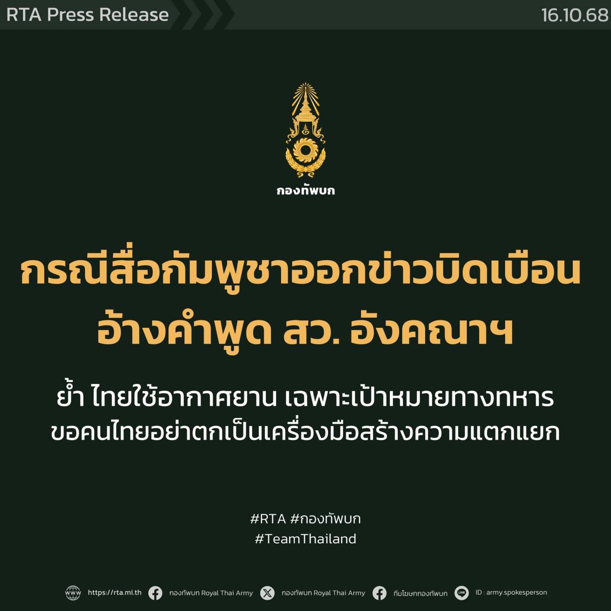 อย่างไรก็ตาม สิ่งที่น่ากังวลคือ การที่คนไทยด้วยกันออกมาสื่อสารในลักษณะที่ข้อมูลไม่ครบถ้วน จากความไม่เข้าใจข้อเท็จจริงของสถานการณ์ หรือด้วยเจตนาส่วนบุคคล จนถูกฝ่ายกัมพูชาหยิบนำไปกล่าวอ้างเพื่อใช้ประโยชน์ในการปฏิบัติการข่าวสาร